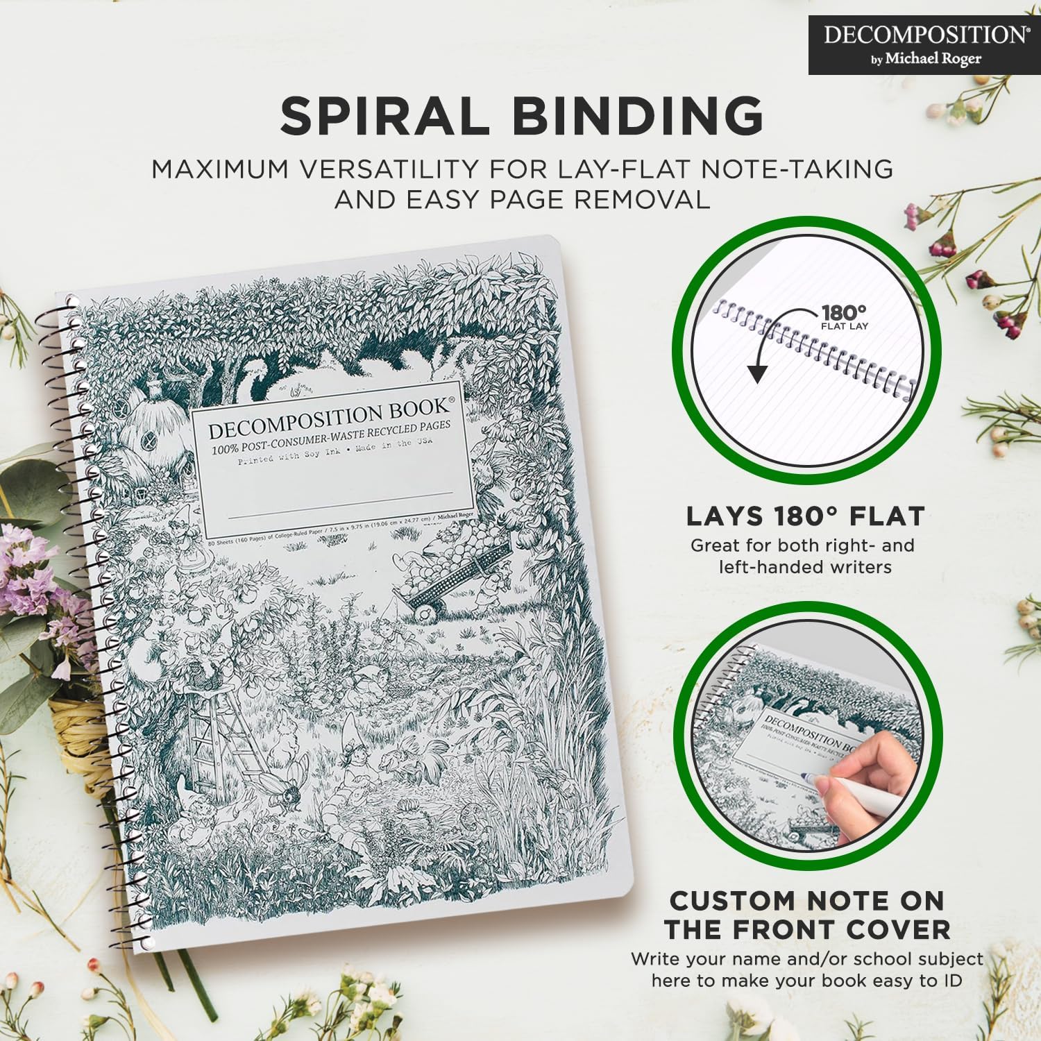 Decomposition Gardening Gnomes College Ruled Spiral Notebook - 9.75 x 7.5 Journal with 160 Lined Pages - 100% Recycled Paper - Cute Notebooks for School Supplies, Home & Office - Made in USA