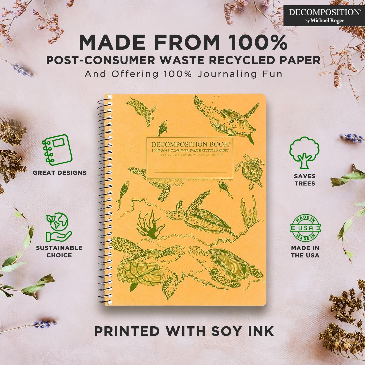 - Made in USA: Decomposition Books are American made, meaning we support American manufacturing jobs, ensure the shortest supply chain with the lightest-possible carbon footprint and can attest to the workplace protections domestic manufacturers must uphold.