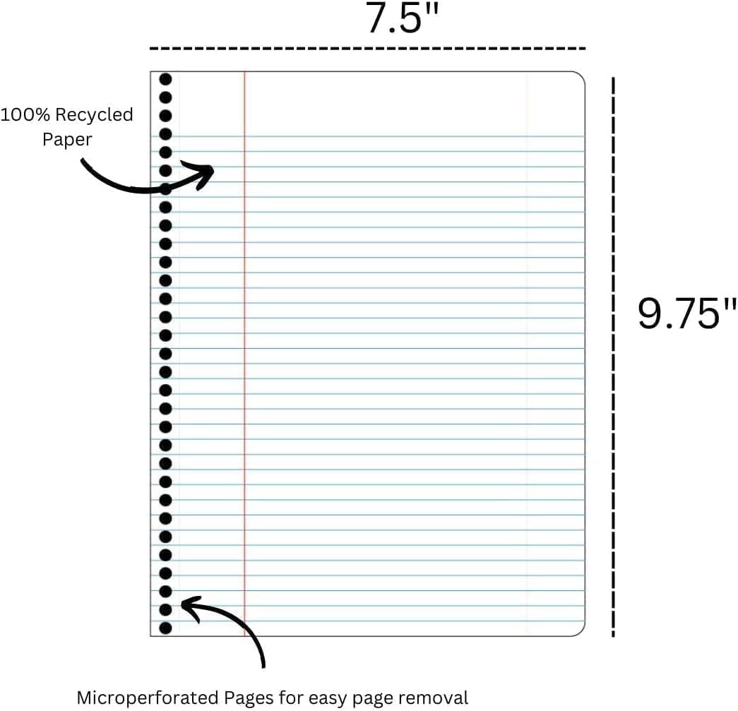 - Special Feature : 100% Recycled Paper, Printed with Soy Ink, College-Ruled Pages, Micro-Perforated Sheets, Spiral-Bound for Easy Use, Versatile for Multiple Uses 100% Recycled Paper, Printed with Soy Ink, College-Ruled Pages, Micro-Perforated Sheets, Spiral-Bound for Easy Use, Versatile for Multiple Uses