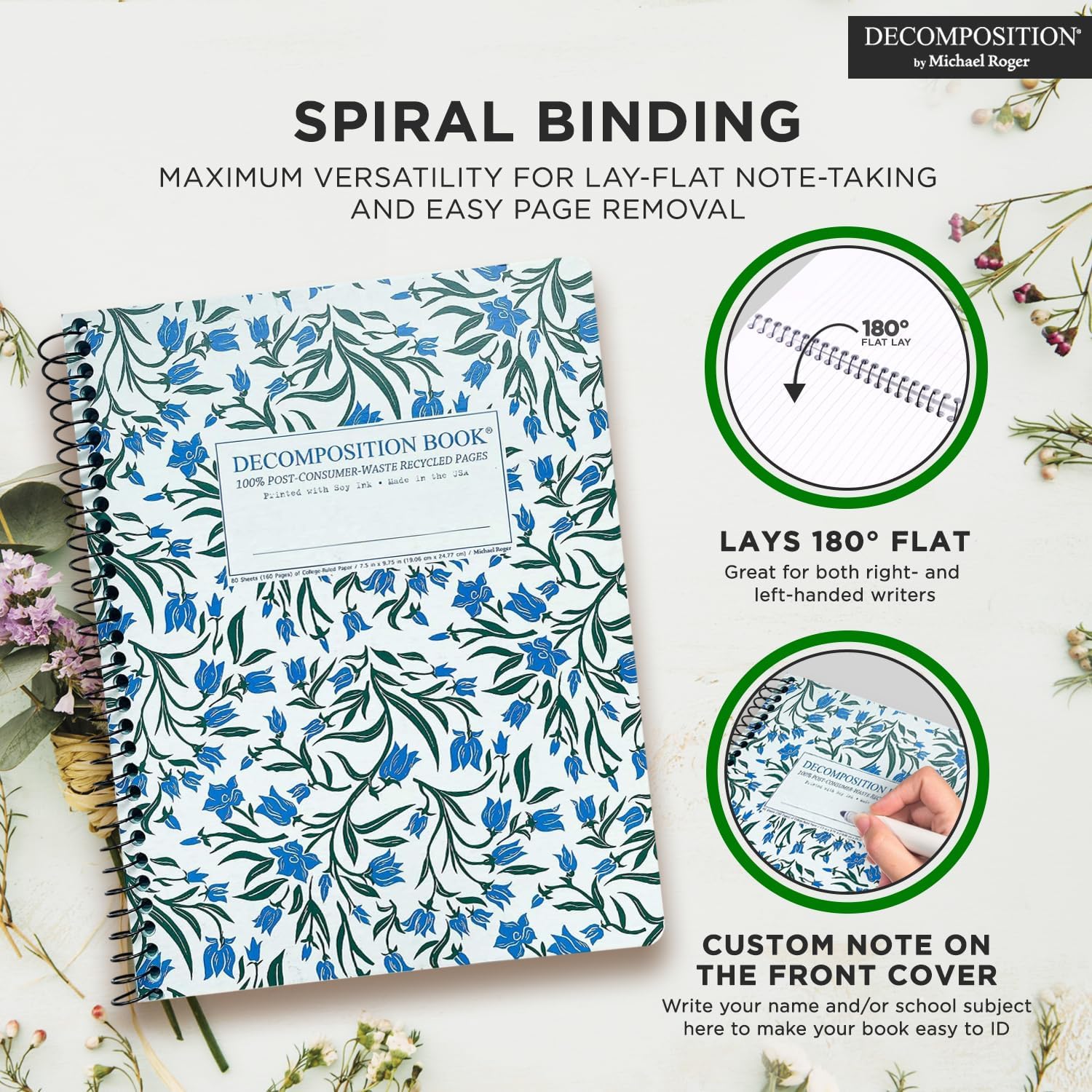 Decomposition Bluebells College Ruled Spiral Notebooks – 9.75 x 7.5 Journal with 160 Lined Pages – Notebooks for School Supplies, Home & Office – 100% Recycled Paper – Made in USA