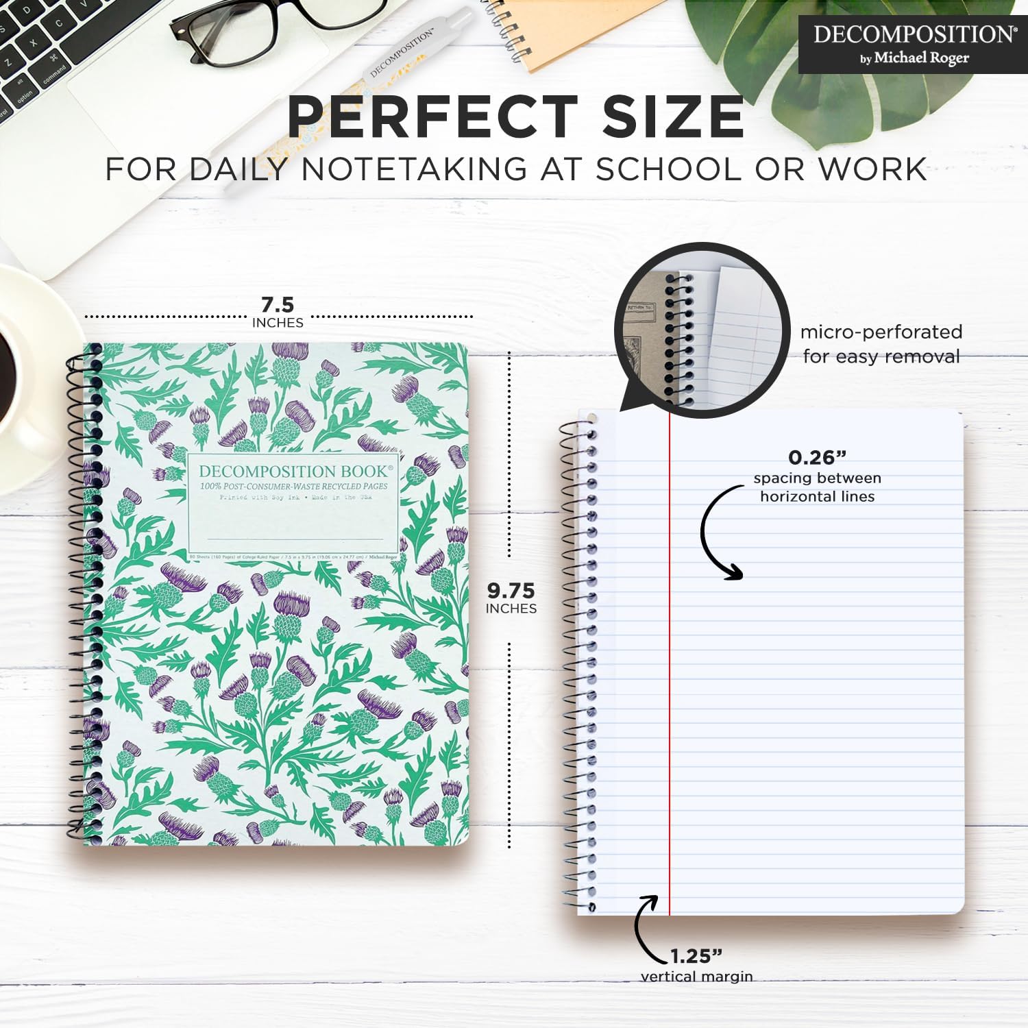 Decomposition Thistles College Ruled Spiral Notebook - 9.75 x 7.5 Journal with 160 Lined Pages - 100% Recycled Paper - Cute Notebooks for School Supplies, Home & Office - Made in USA