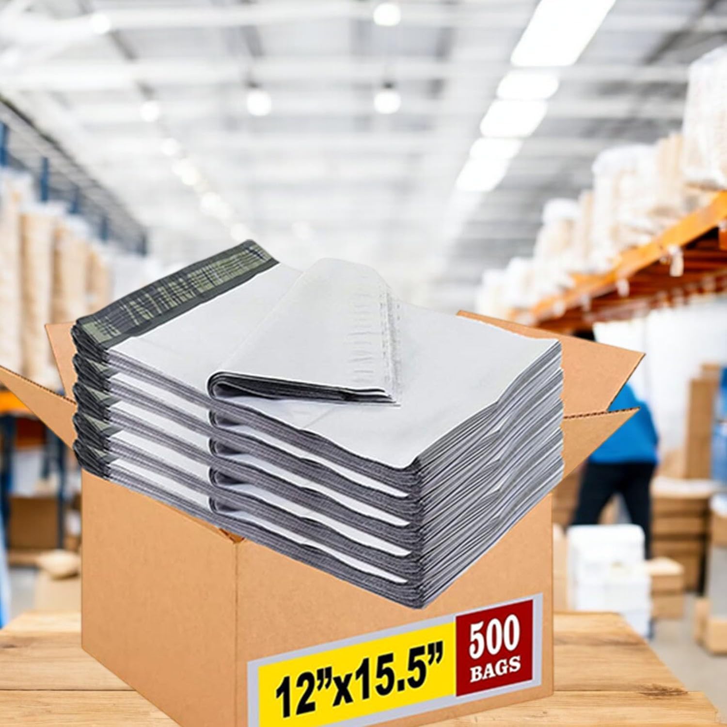 iMBAPrice 500 - 12 x 15.5 Premium Matte Finish White Poly Mailers Envelopes Bags (iMBA-5PM-500)