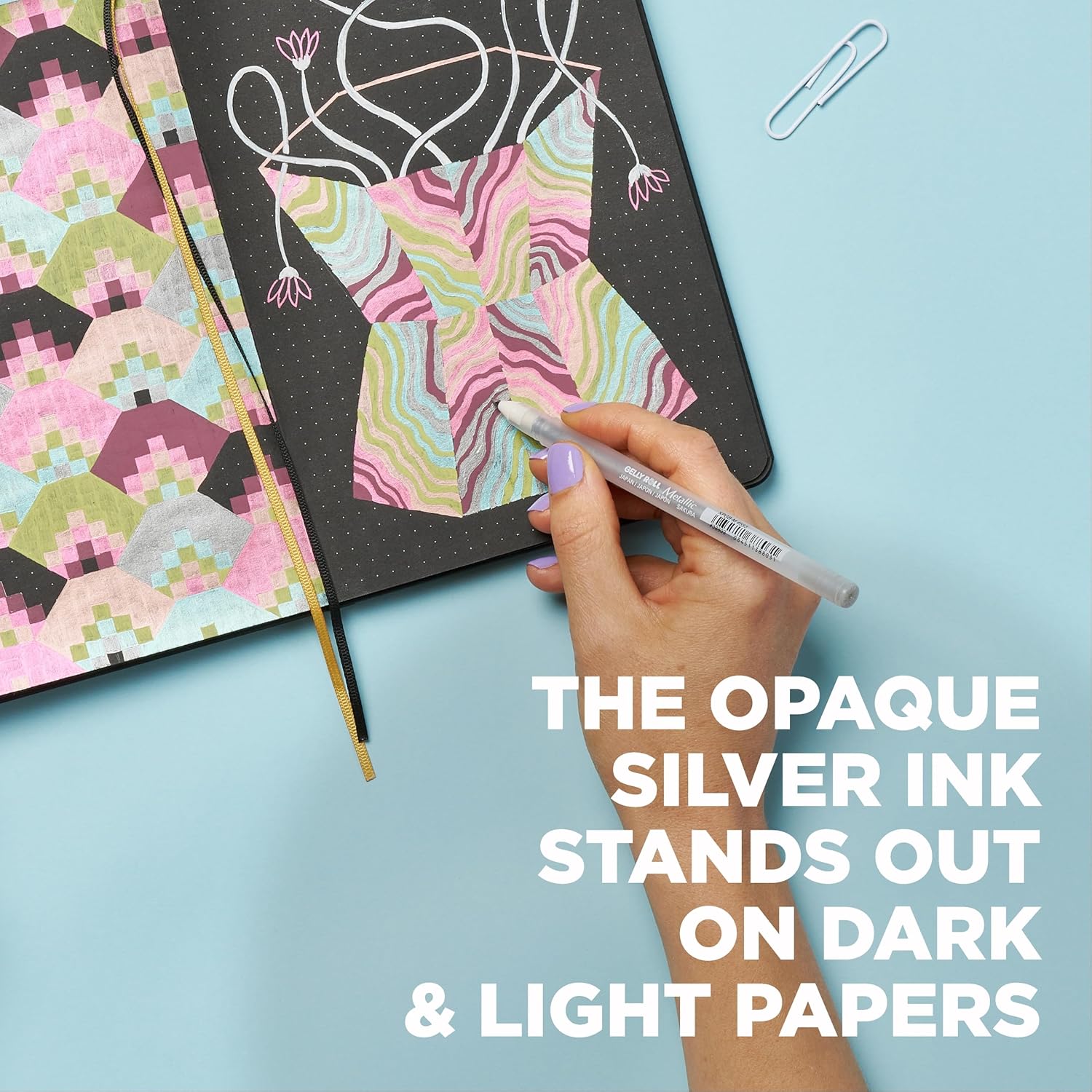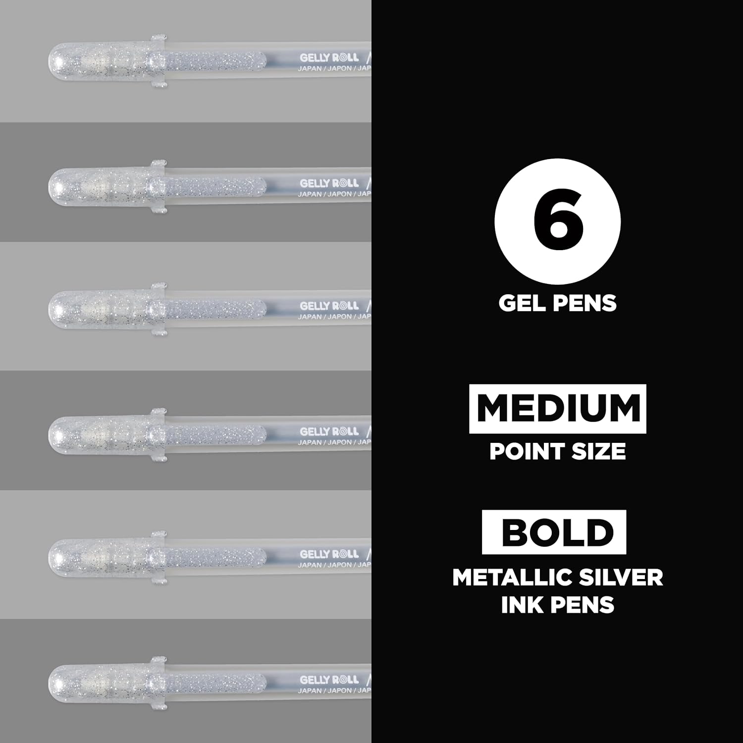 SAKURA Gelly Roll Metallic Gel Pens - Pens for Scrapbook, Journals, or Drawing - Metallic Silver Ink - Medium Line - 6 Pack