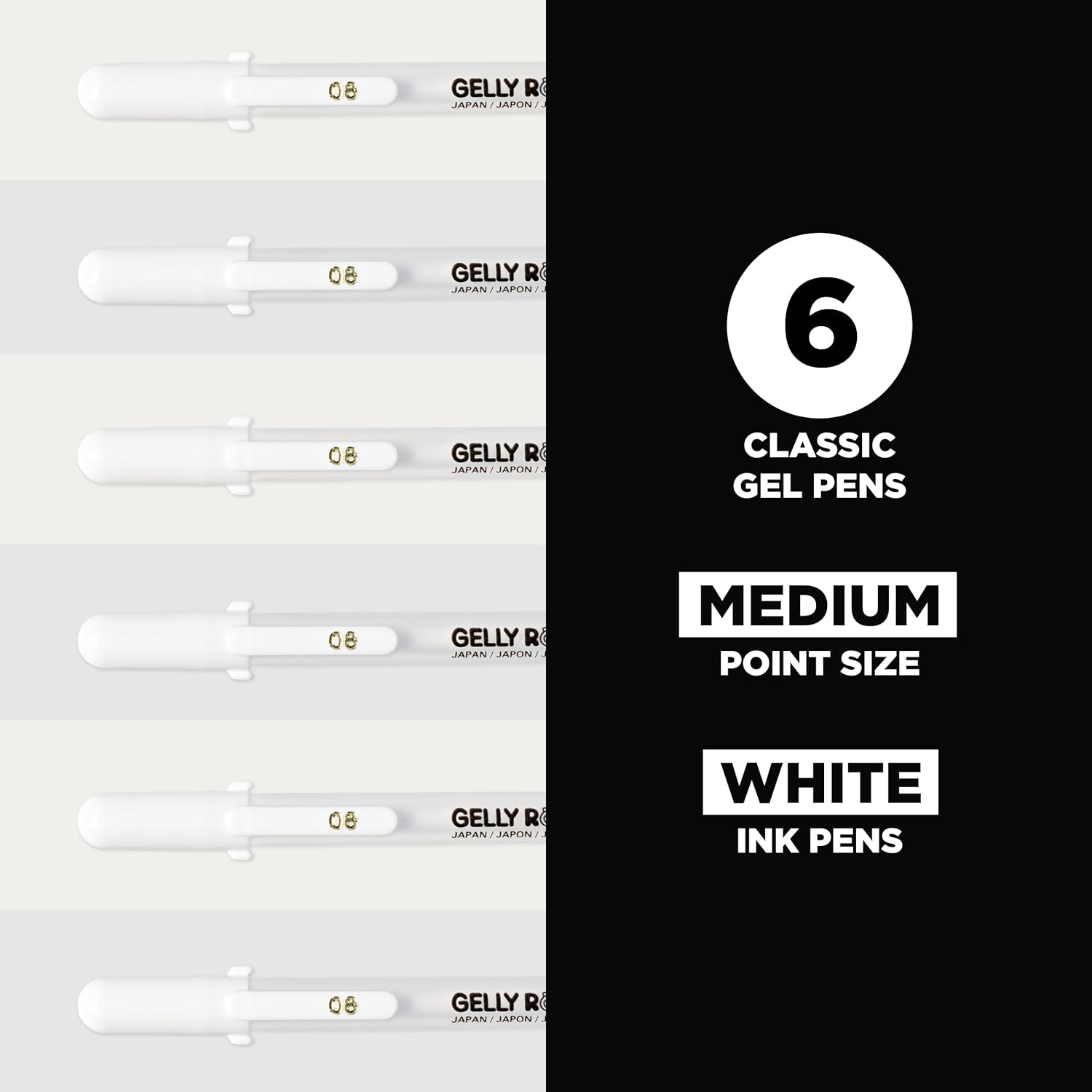 SAKURA Gelly Roll Gel Pens - Medium Tip Ink Pens for Journaling, Art, or Drawing - Classic White Ink - All are Tip Size Medium 08-6 Pack