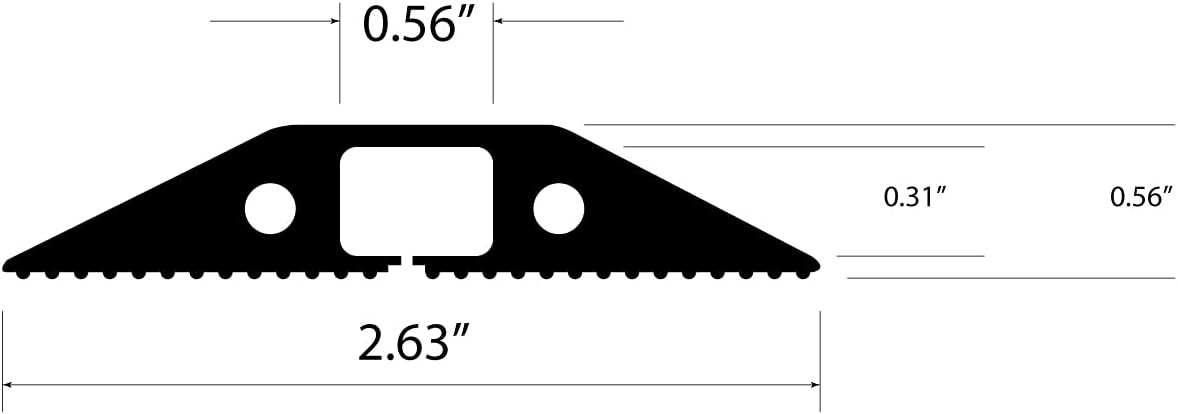 - D-Line Heavy Duty Floor Cable Protector: 6' (L) x 2.63" (W) x 0.56" (H) Inner Channel = 0.56" (W) x 0.31 (H)