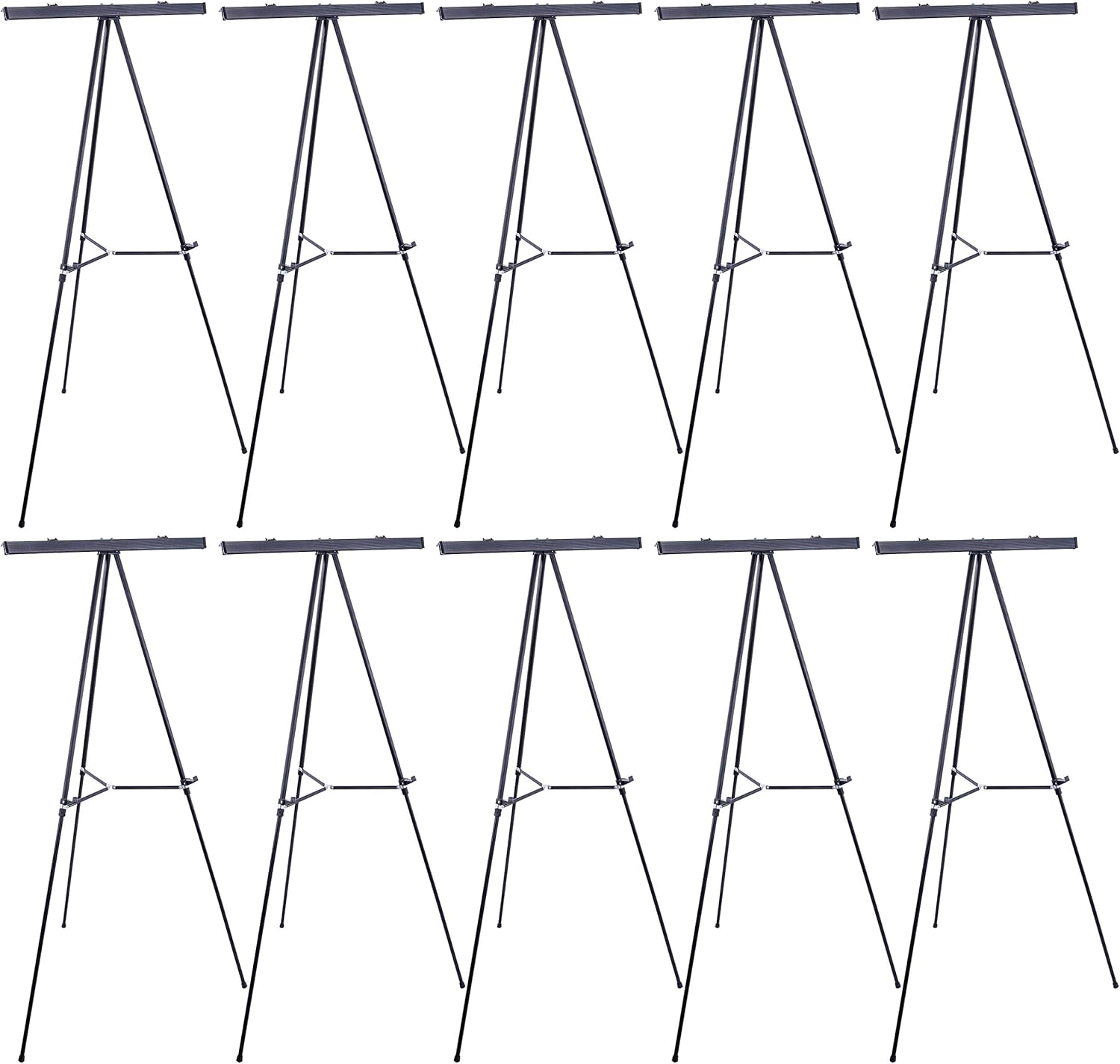 U.S. Art Supply 66" High Boardroom Black Aluminum Flip Chart Easel & Presentation Stand (10 Pack) - Adjustable Floor/Tabletop, Portable Tripod, Holds 25 lbs., for Chart Paper, Poster Boards, & Pads