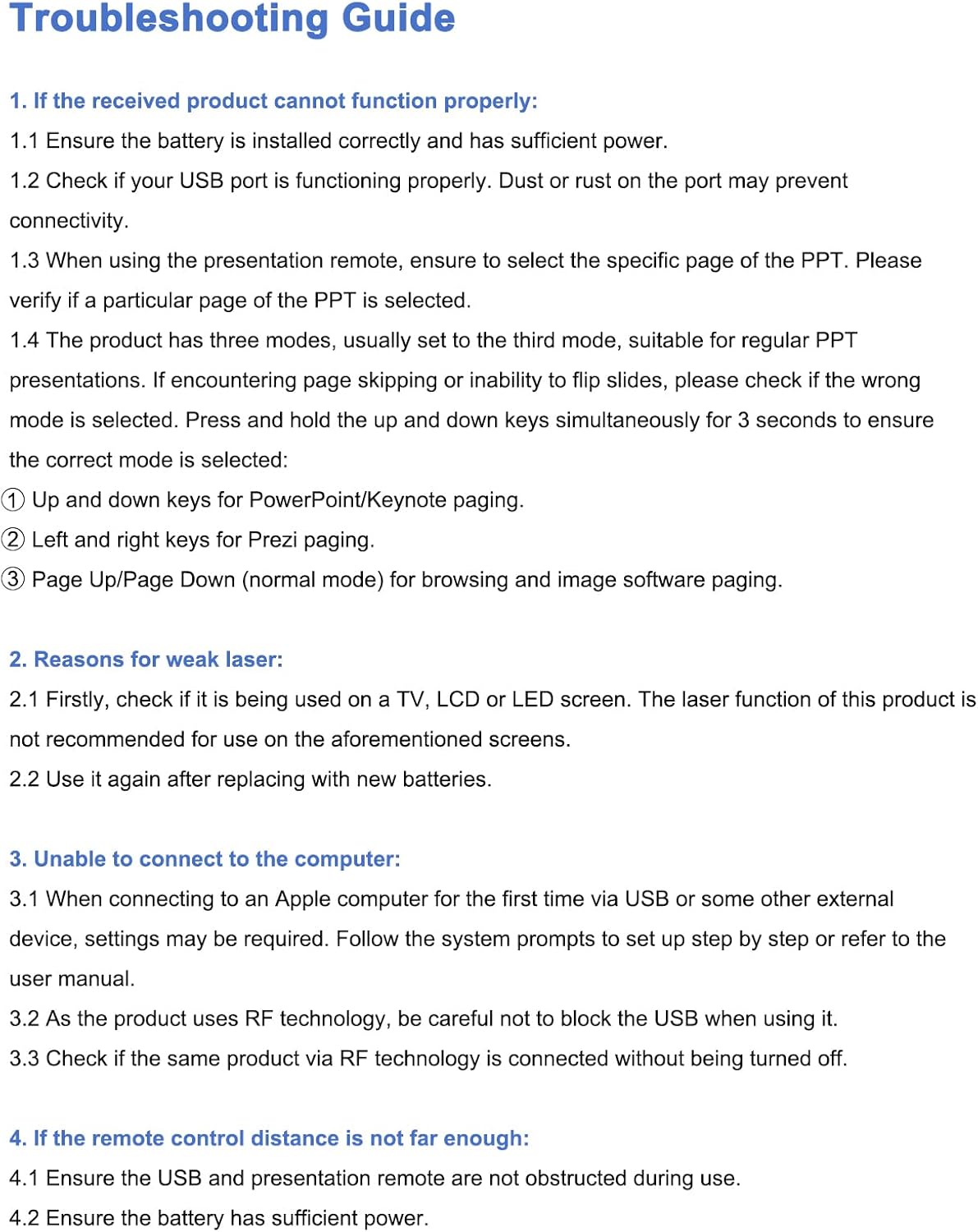 - 【BRIGHT RED POINTER & 100FT LONG WIRELESS RANGE】 Powerpoint presentation clicker with bright red light that is easy to see against most backgrounds ((Not Recommended for LCD/LED/TV Screens);Wireless range of powerpoint presenter up to 100 foot, free to move around even in a large room