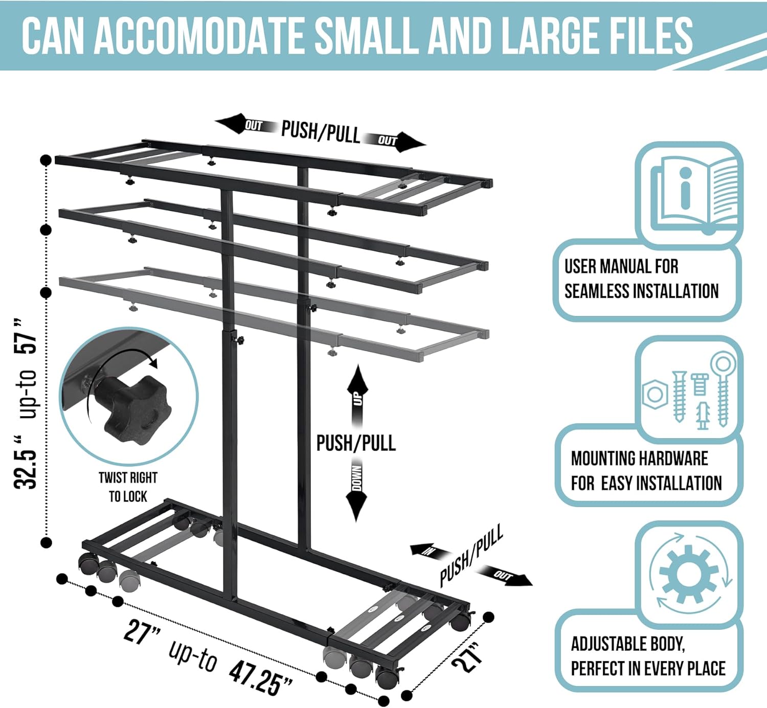 - Sturdy Blueprint Plan Rack: The AdirOffice blueprint storage organizers are crafted from solid steel and capable of holding up to 240 pounds or up to 1200 documents. With the included assembly manual and hardware, you can have this blueprint hanger ready with ease.