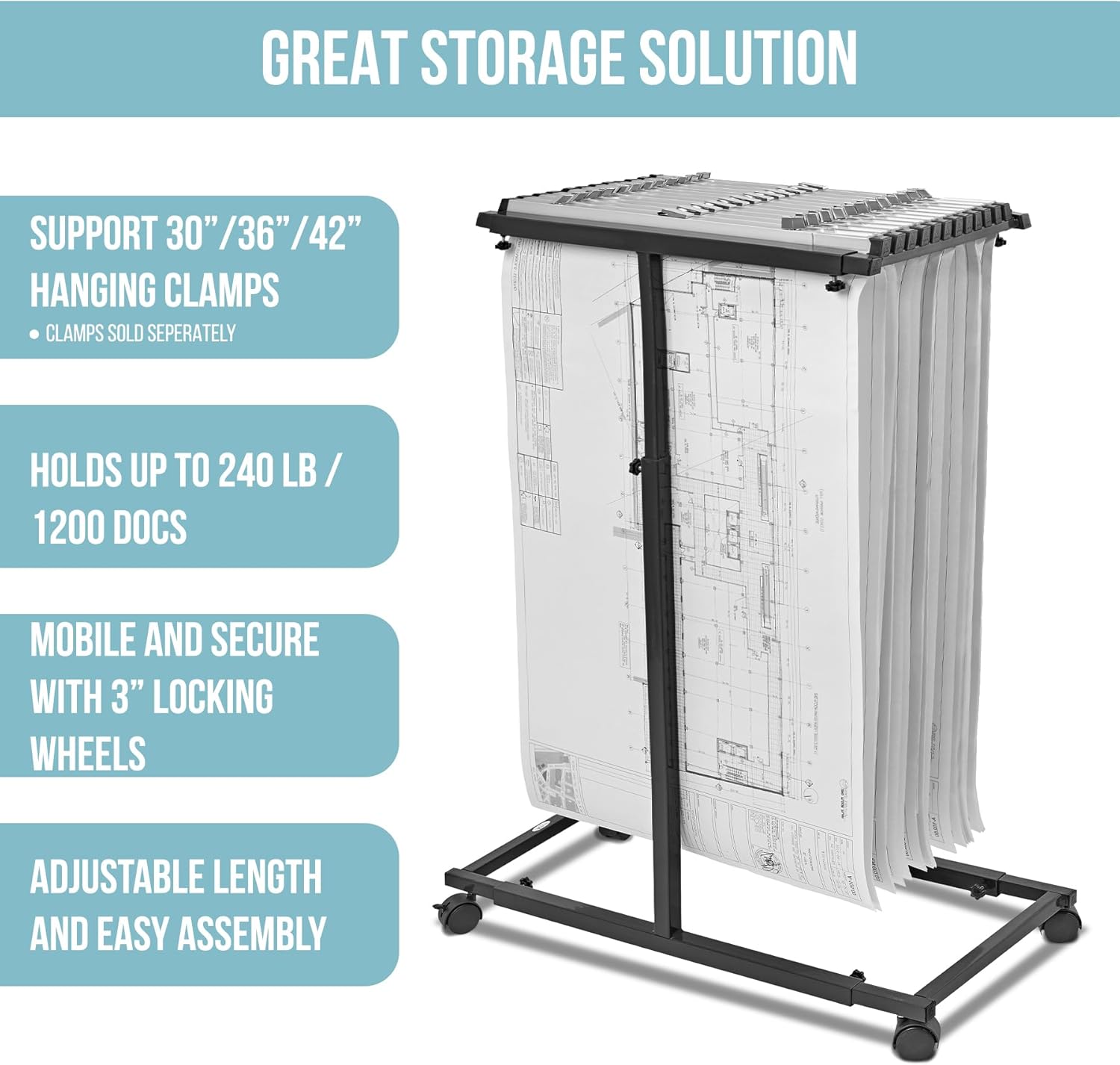 - Mobile Blueprint Rack: The Adir hanging blueprint racks are transportable with ease. The portable storage for blueprints is equipped with brakes to ensure stability.