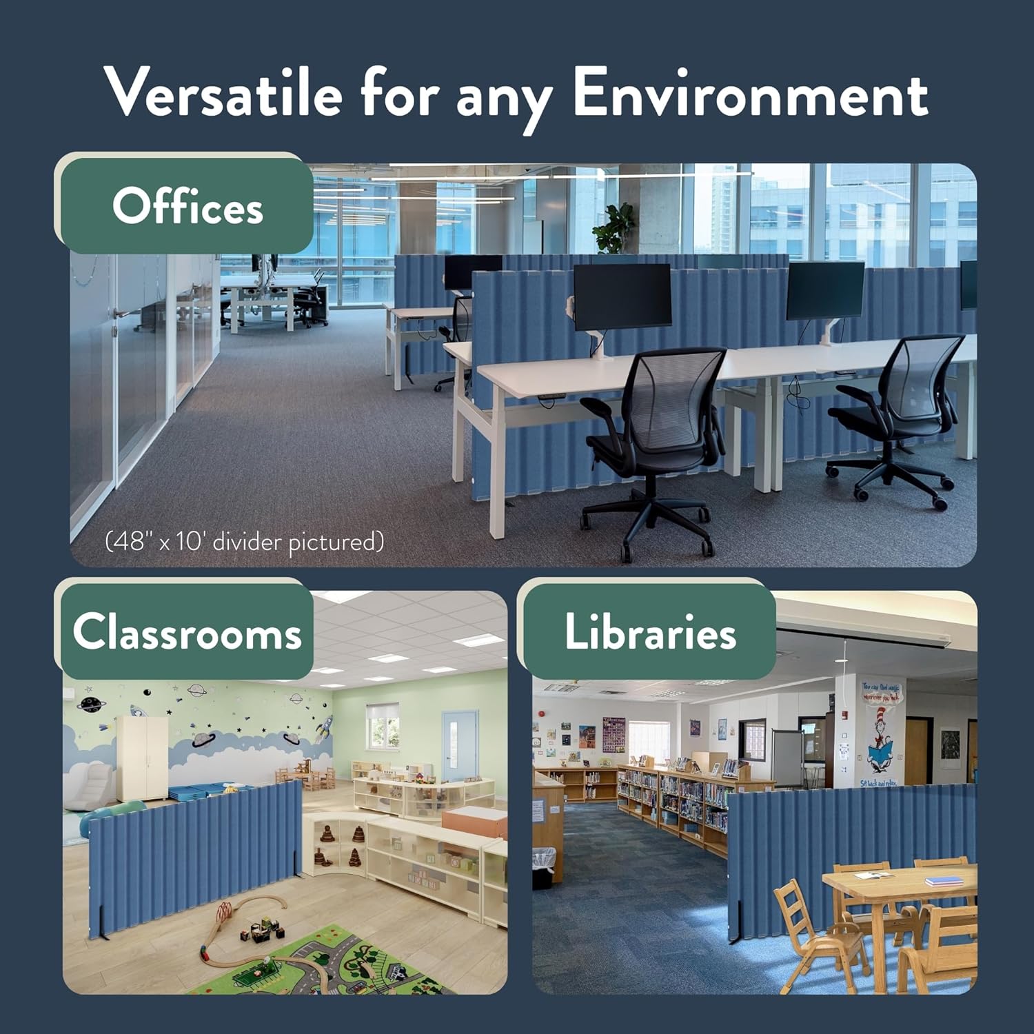 Children’s Factory 30" x 6' Quiet Divider With Sound Dampening Panels, Freestanding Room Divider Wall, Blueberry