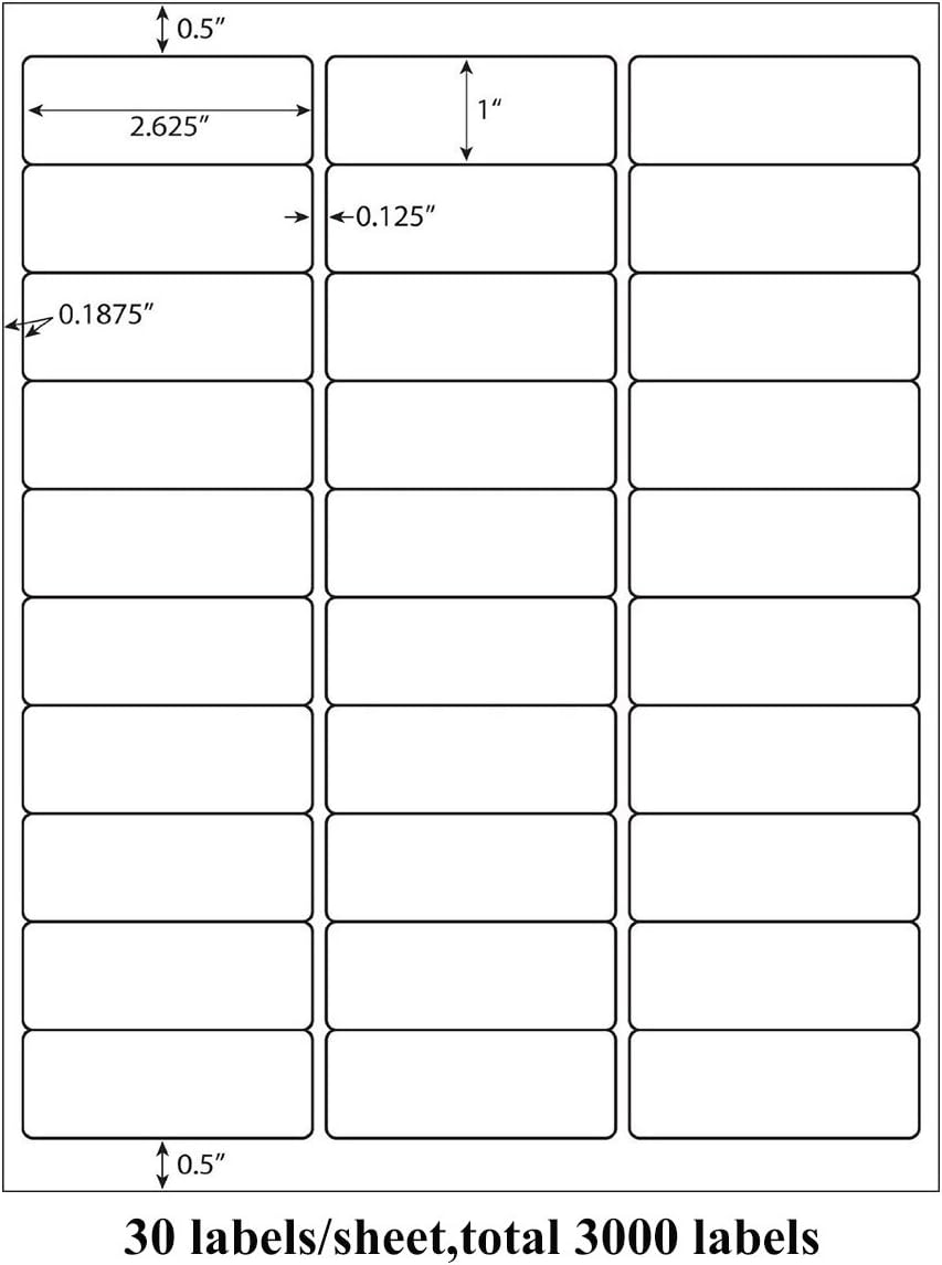 9527 Product 30 up 1 x 2-5/8 Sticker Labels Shipping Address Labels SKU Labels for Laser/Ink Jet Printer,100 Sheets,Total 3000 Labels
