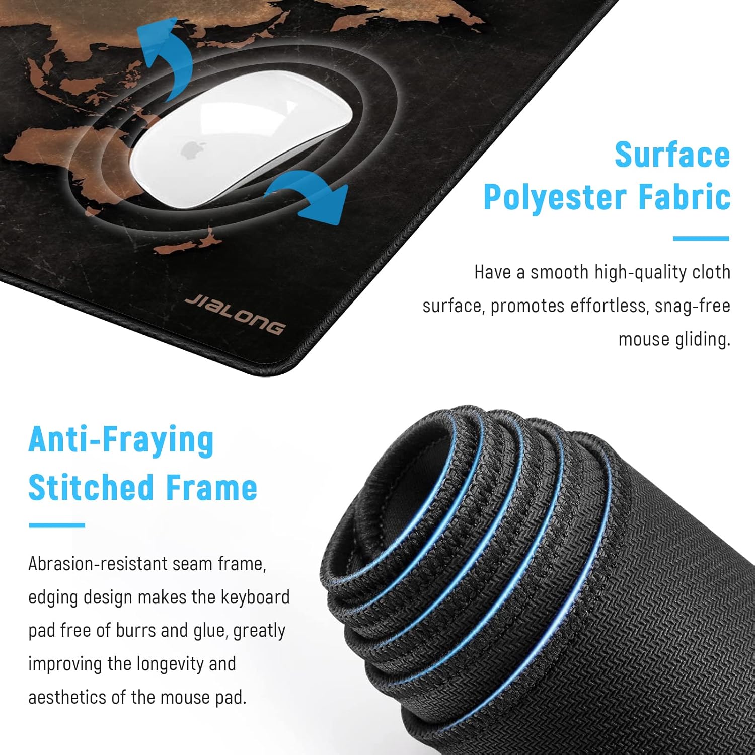 JIALONG Large Gaming Mouse Pad, XXL Desk Mousepad with Stitched Edges, Non-Slip Base Keyboard Pad for Gamer, Office & Home Retro Map