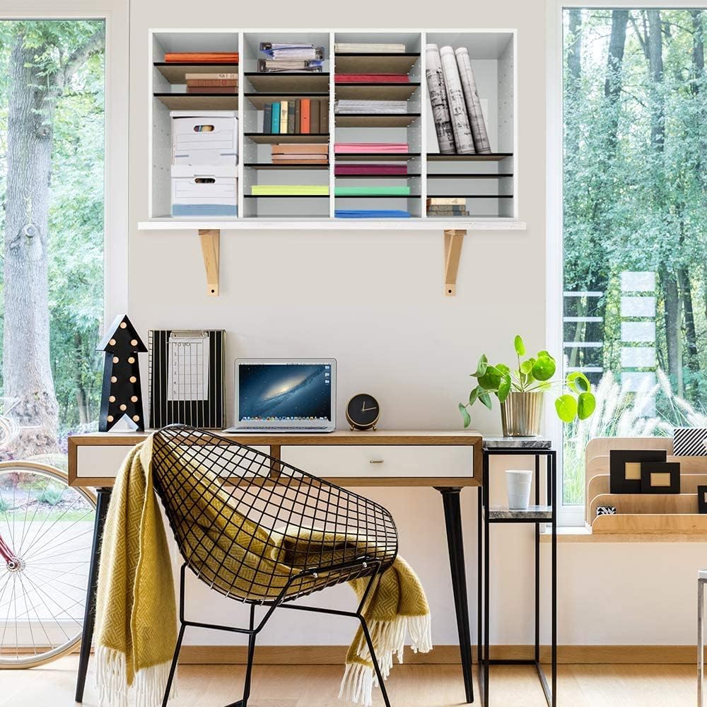 AdirOffice Wooden Adjustable Literature Organizer, 36 Compartment Office Mailbox, or Classroom Literature Organizer, White