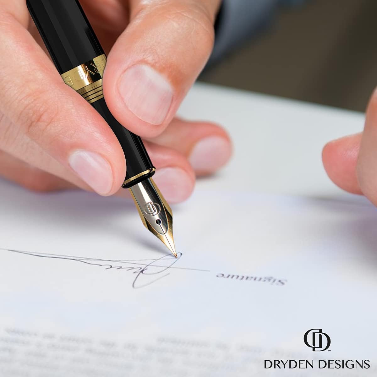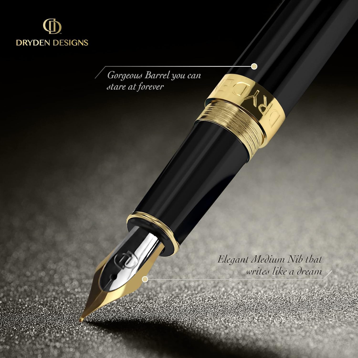Dryden Designs Fountain Pen Medium Nib Gift Pouch - with 24 Ink Cartridges - MCM (Intense Black)