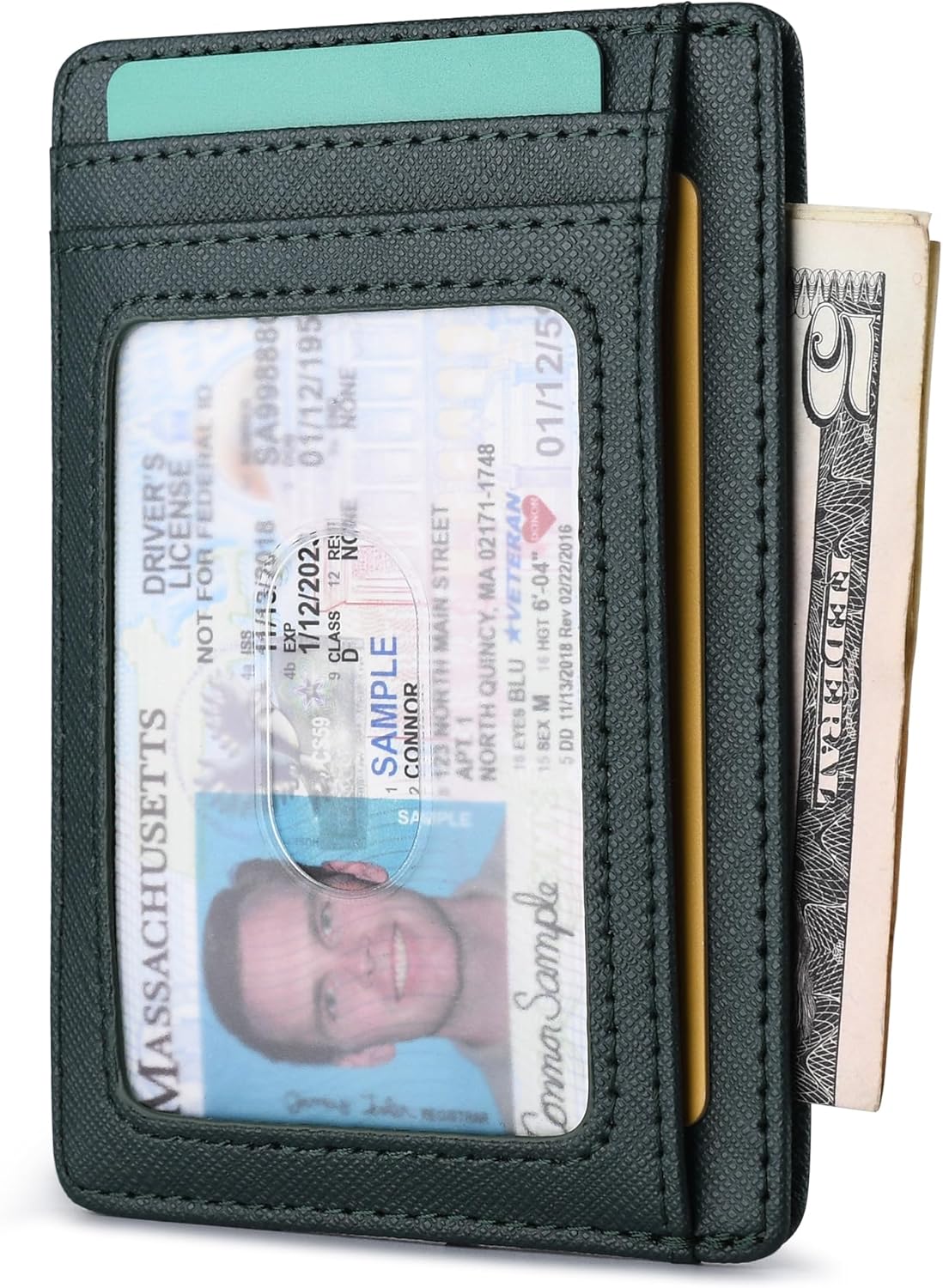 Buffway Slim Minimalist Front Pocket RFID Blocking Leather Wallets for Men and Women - Cross Blackish Green