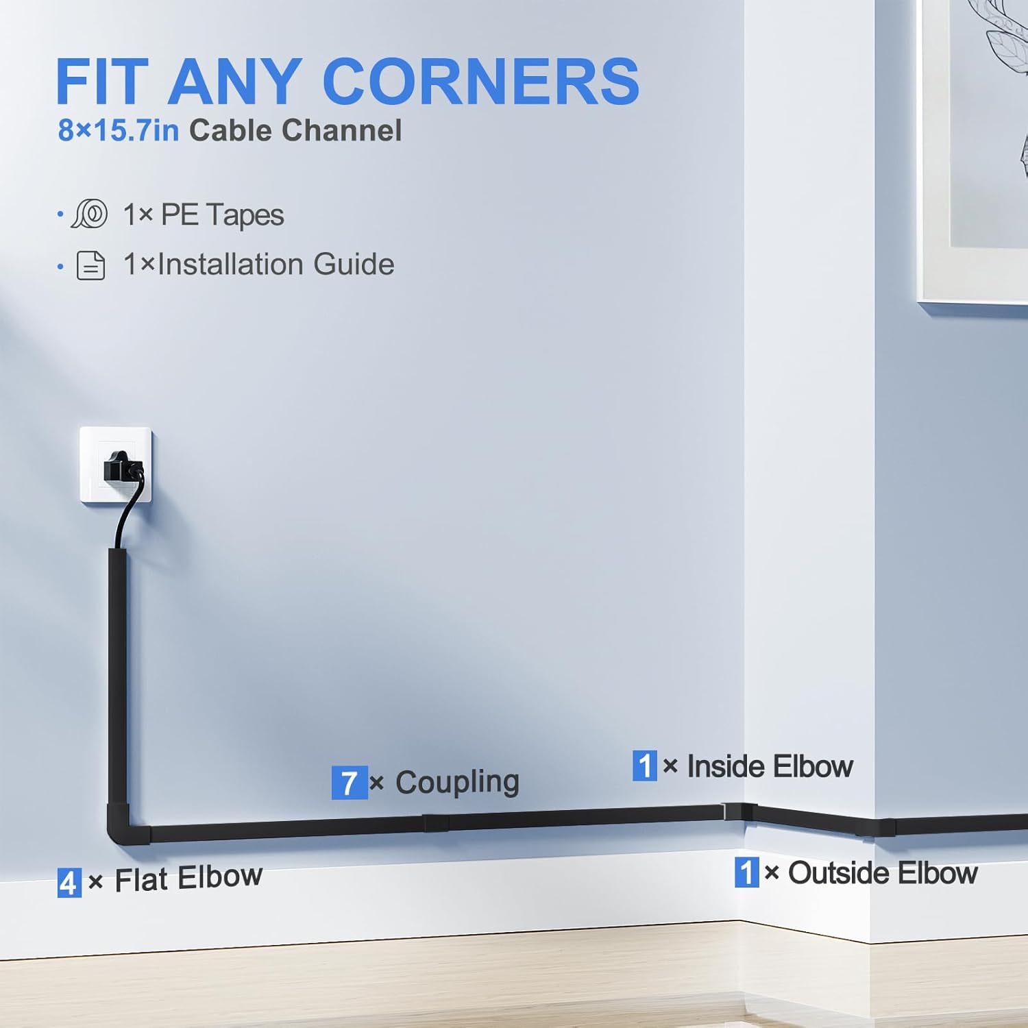 - 8pcs cable management kit! Each cable hider wall comes with 8 cable channels for any residential or office project. This cable hider kit includes 8 cable channels and some parts, reliable mounting tape for maximum cable concealment