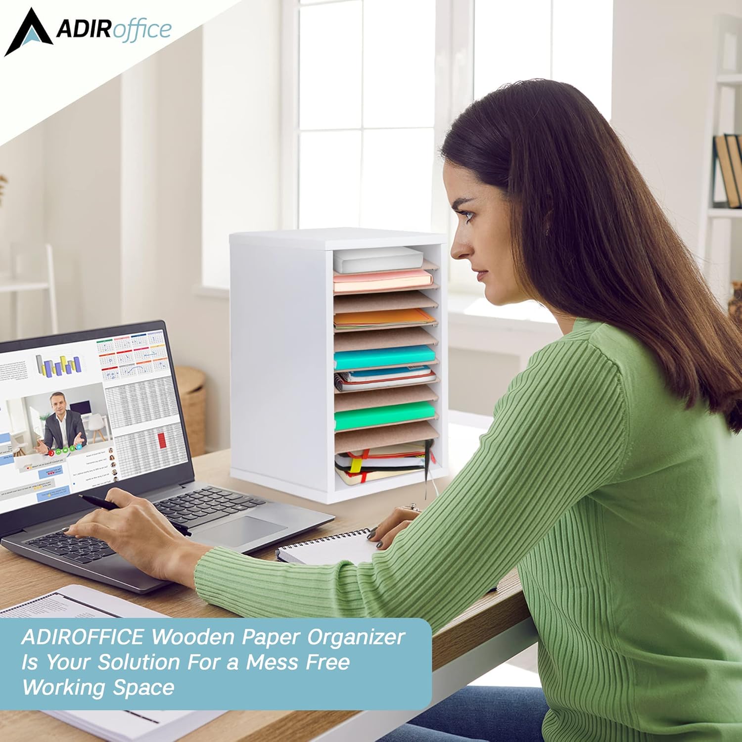 AdirOffice Classroom Mailbox - 11 Compartment Wooden Mail Organizer, Construction Paper Storage, Vertical Desktop Sorter with Slots, Mailboxes With Removable Shelves (11 Slot, White)