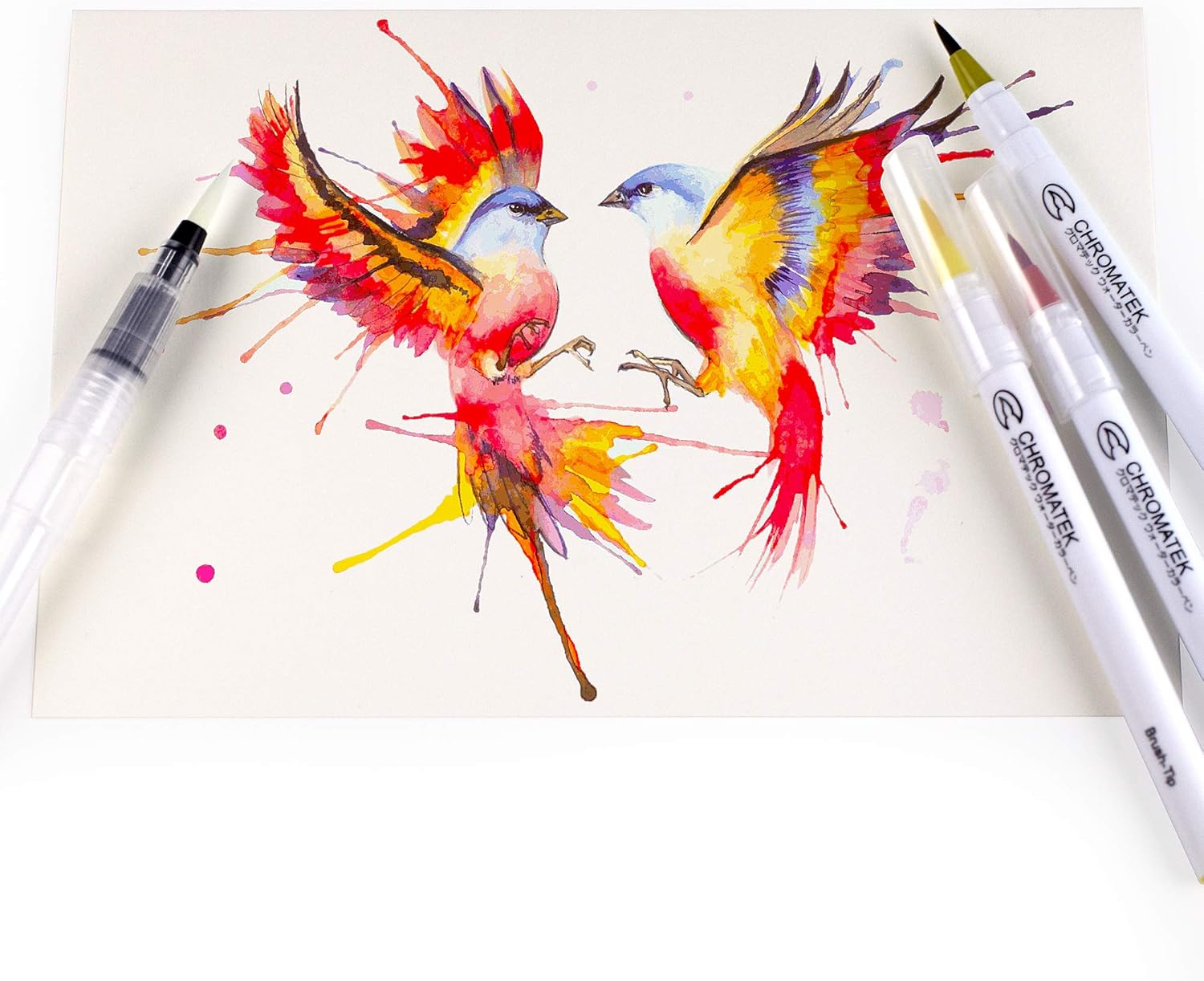 CHROMATEK 30 Watercolor Brush Pens - 15 Page Tutorial Pad and Online Video Series - Real Brush Tip, Vivid, Blendable - Professional Artist Quality - 27 Colors - 3 Aquapens