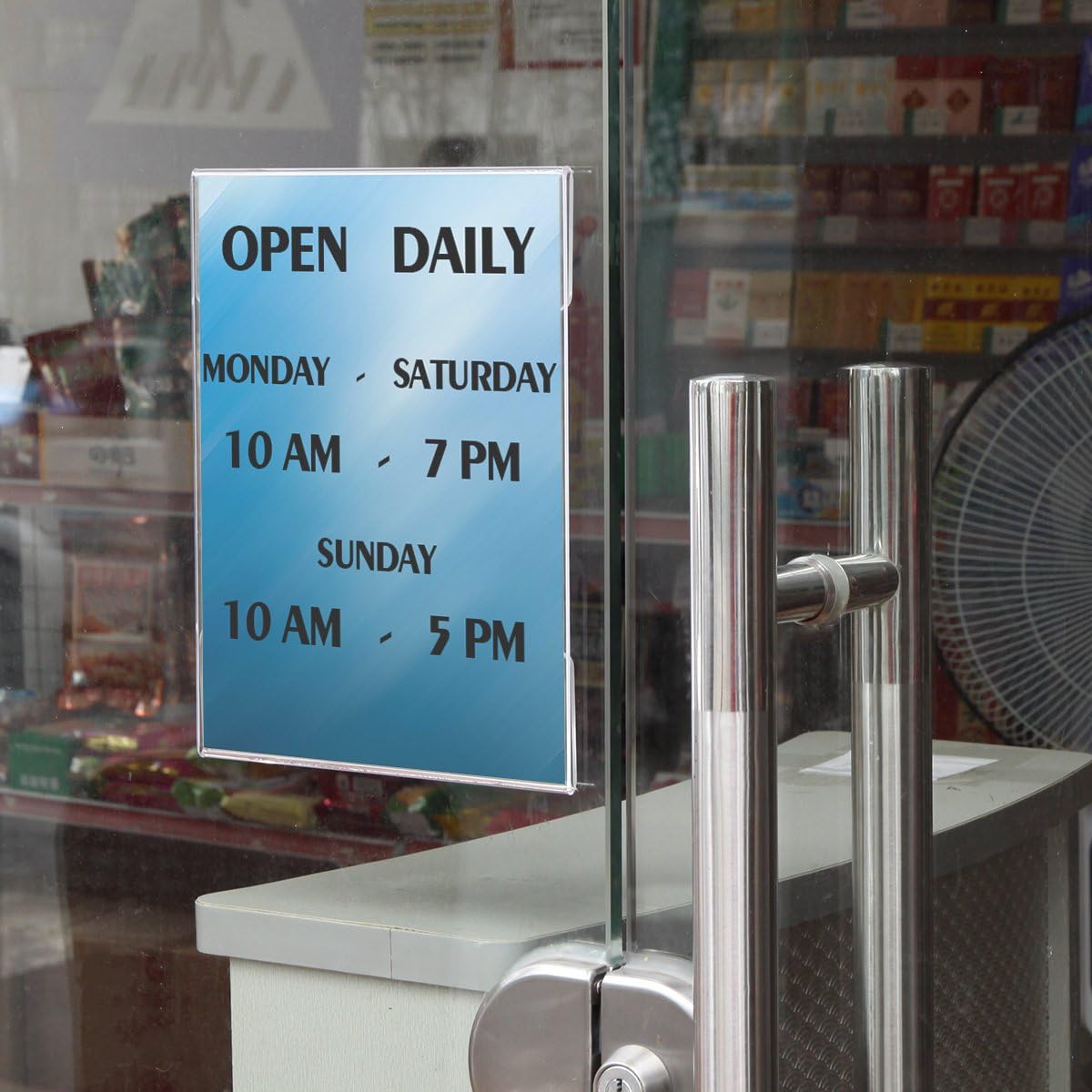 - Multi size option clear sign holder swap out paper or picture in seconds.Perfect for home,office,store,restaurant.