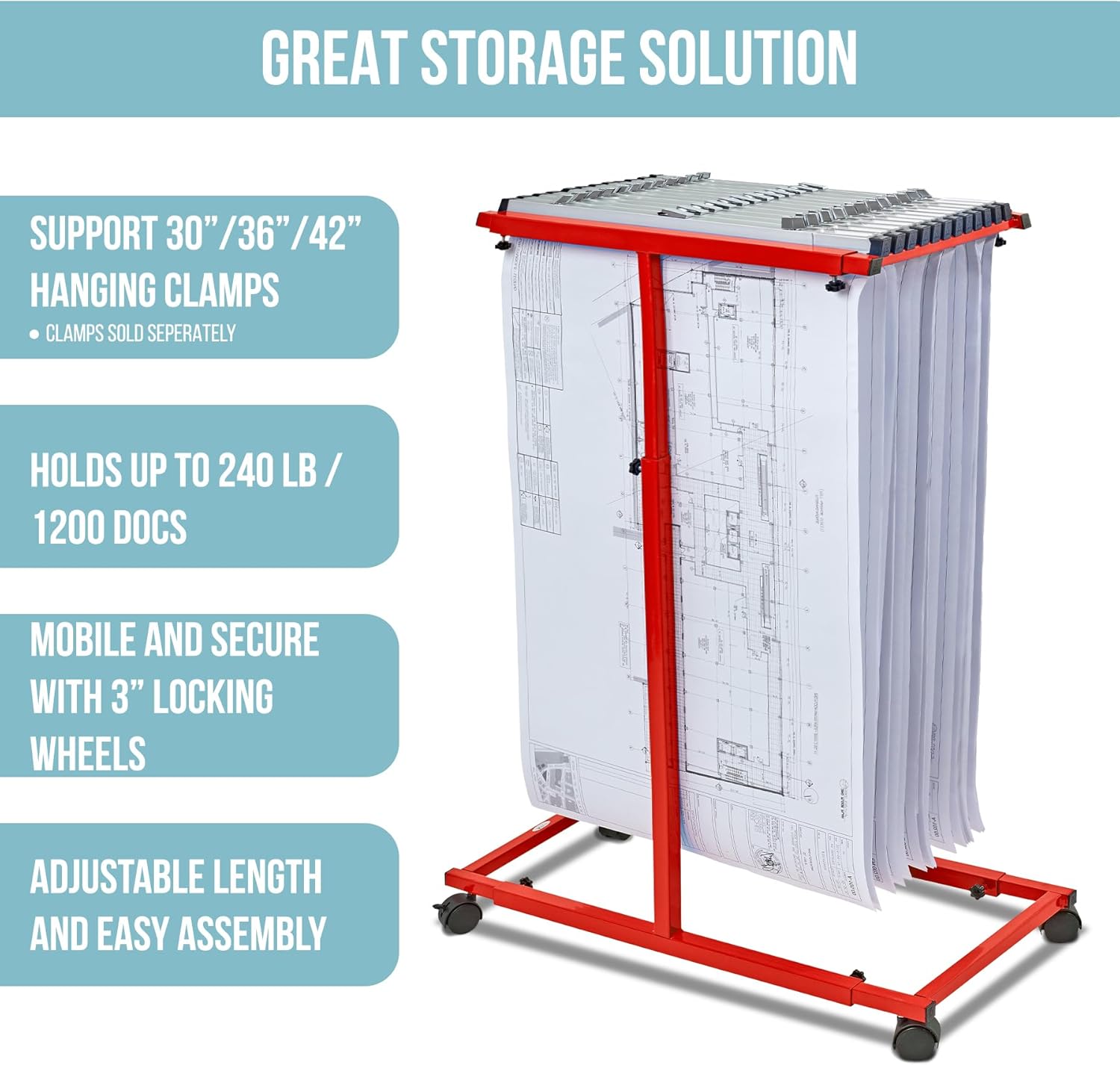 - Mobile Blueprint Rack: The Adir hanging blueprint racks are transportable with ease. The portable storage for blueprints is equipped with brakes to ensure stability.