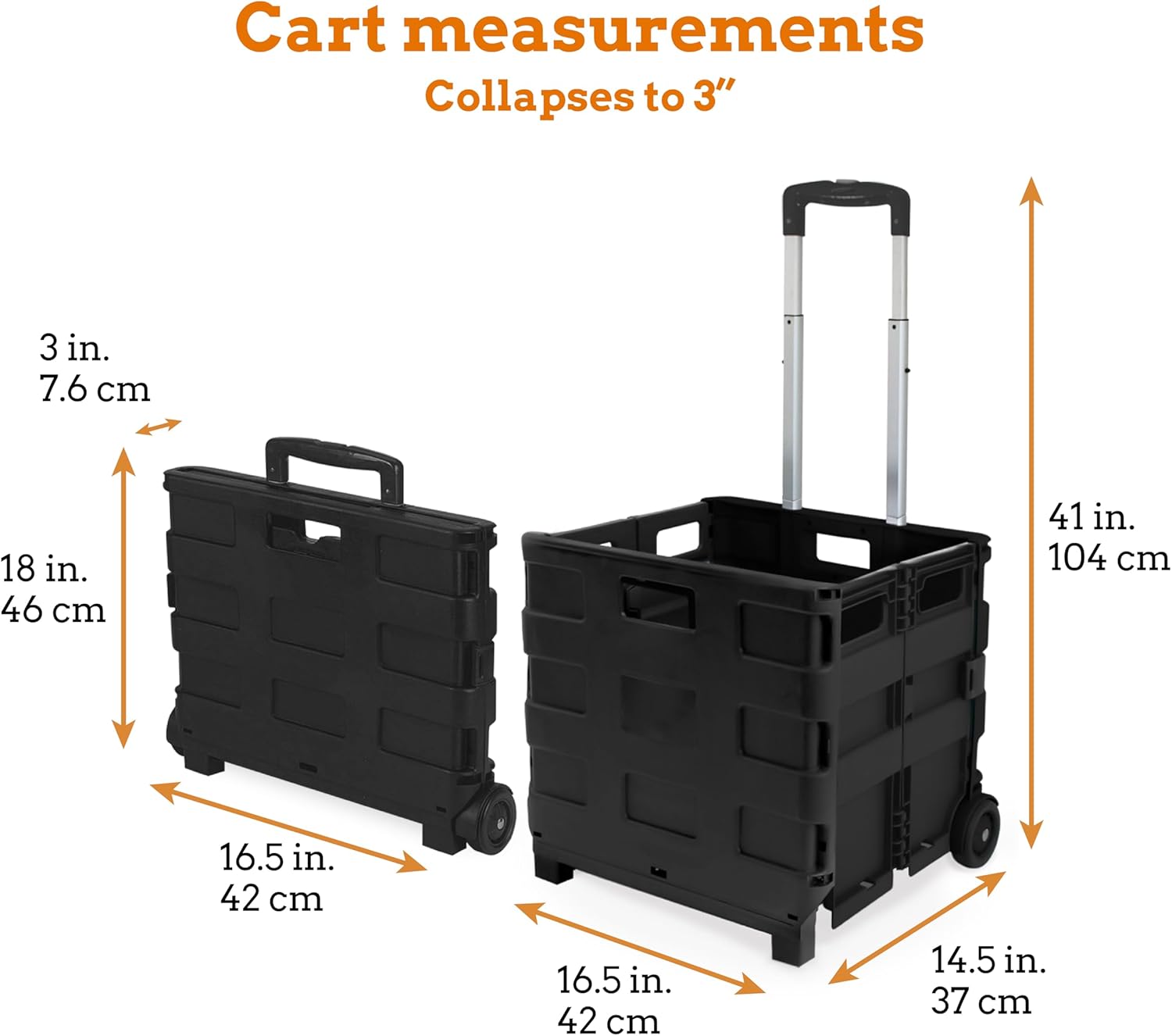 - 🔴 LARGE CAPACITY UTILITY CART: Super Strong Heavy Duty Construction- Holds Up To 80 Lbs: Collapses To 3" When Folded Flat / 16.5" When Fully Expanded