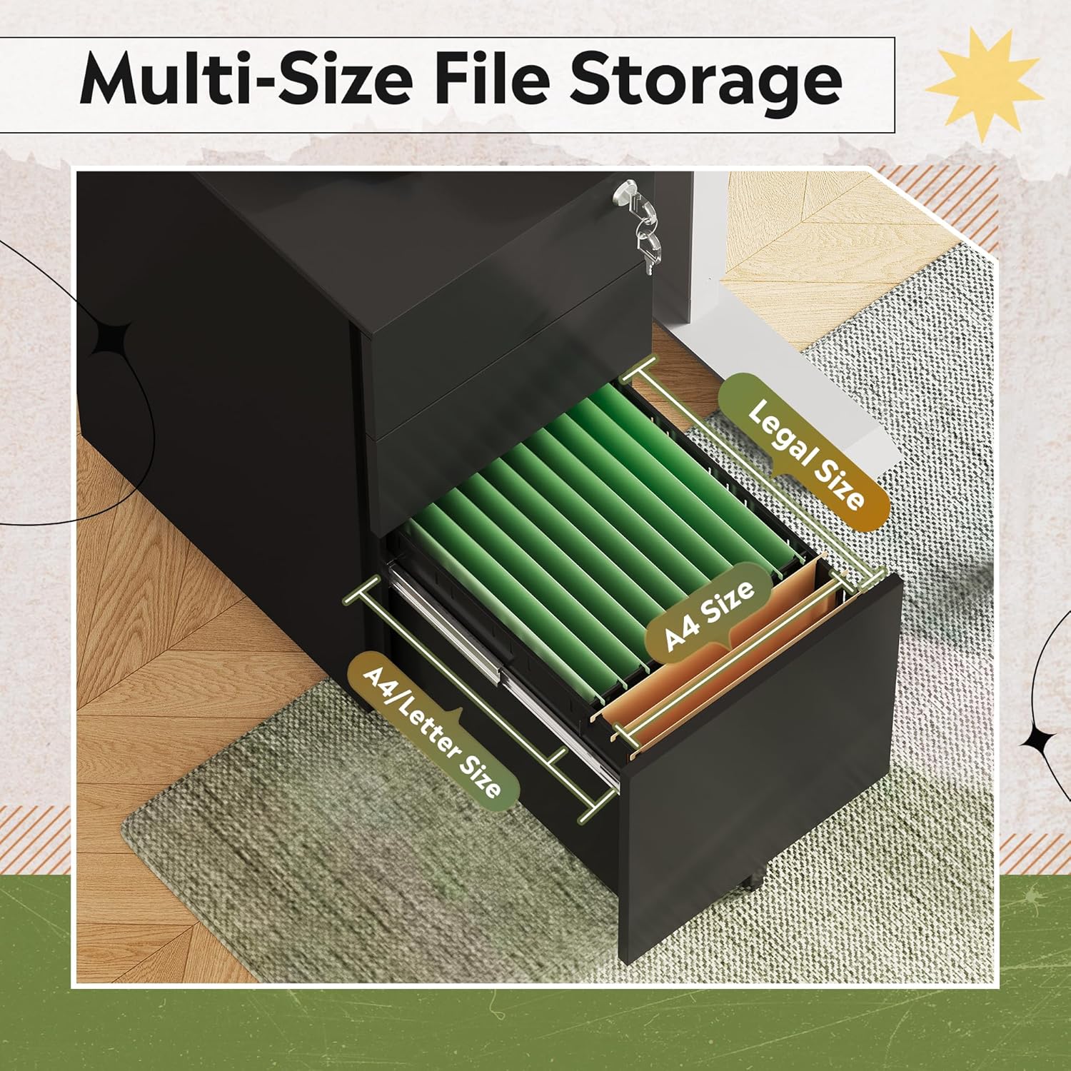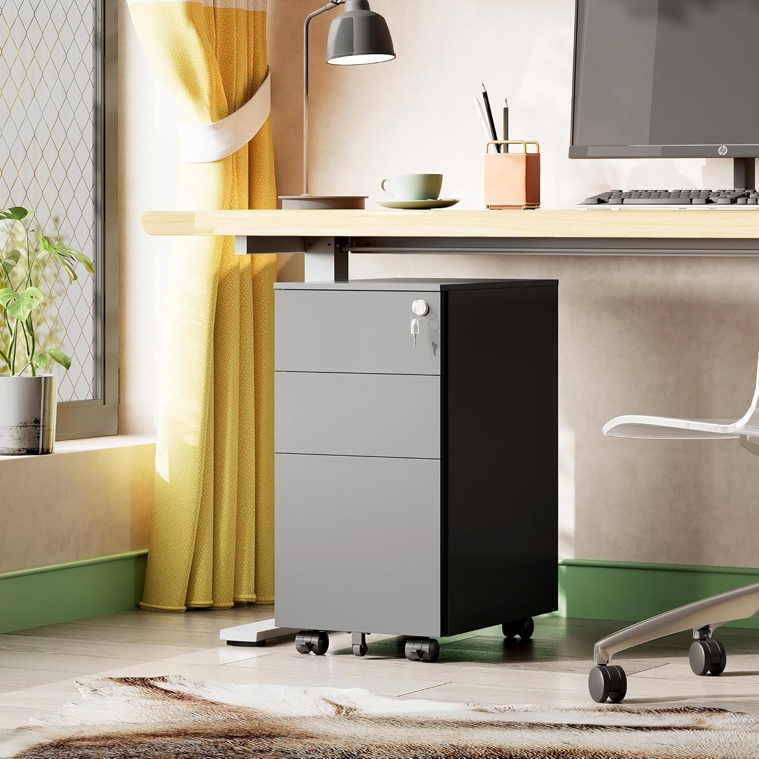 - BUILT-IN LOCK: The pedestal cabinet with a built-in lock that secures all 3 drawers, keeping your personal documents, important receipts safe and organized. Perfect for office, workplace, home to keep your everyday files close and easy to find.