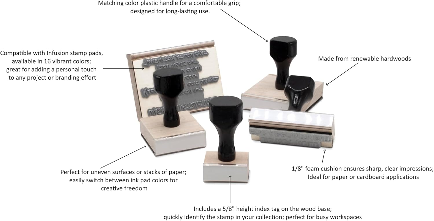 - CUSTOMIZE - Click the Customize Now button to personalize your Infusion Traditional Wood Stamp - Up to 5 Lines