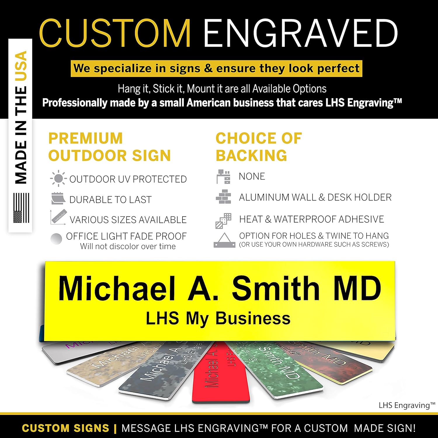 Door Name Plate Personalized for Office Yellow Plastic Name Plate Black Letters - Made in USA 2x12 B4