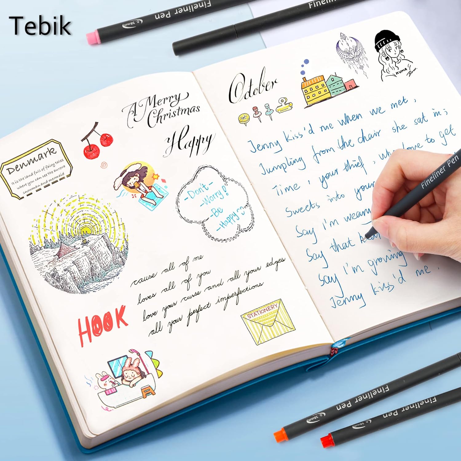 Tebik 80 Pack Planner Colored Pens, 72 Colors Drawing Pens with 8 Stencils, Fineliners for Journal Planner Note Calendar Writing Coloring, Drawing & Detailing School Office Art Supplies