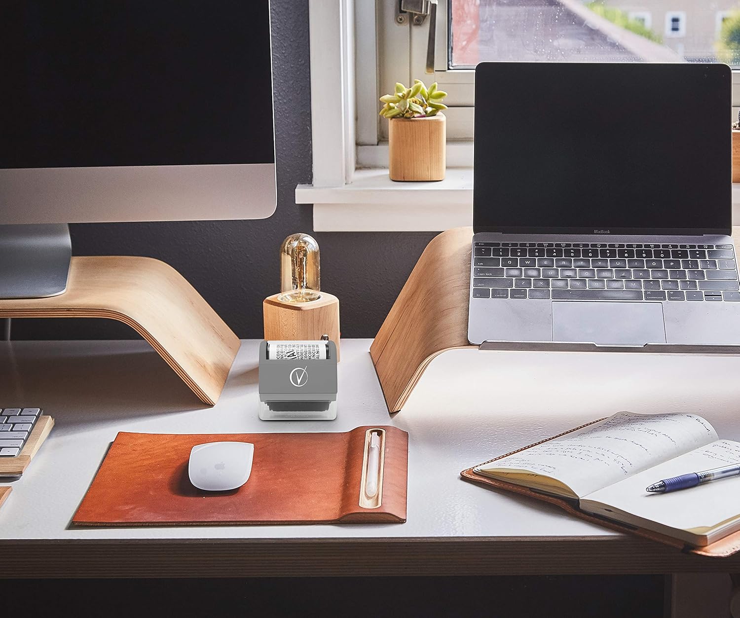 Vantamo Identity Theft Protection Roller Stamp for Hiding Sensitive Information, Wide Confidential Stamp with 6 Ink Refill, Security Stamp Roller for Identity Theft Prevention, Classy Gray