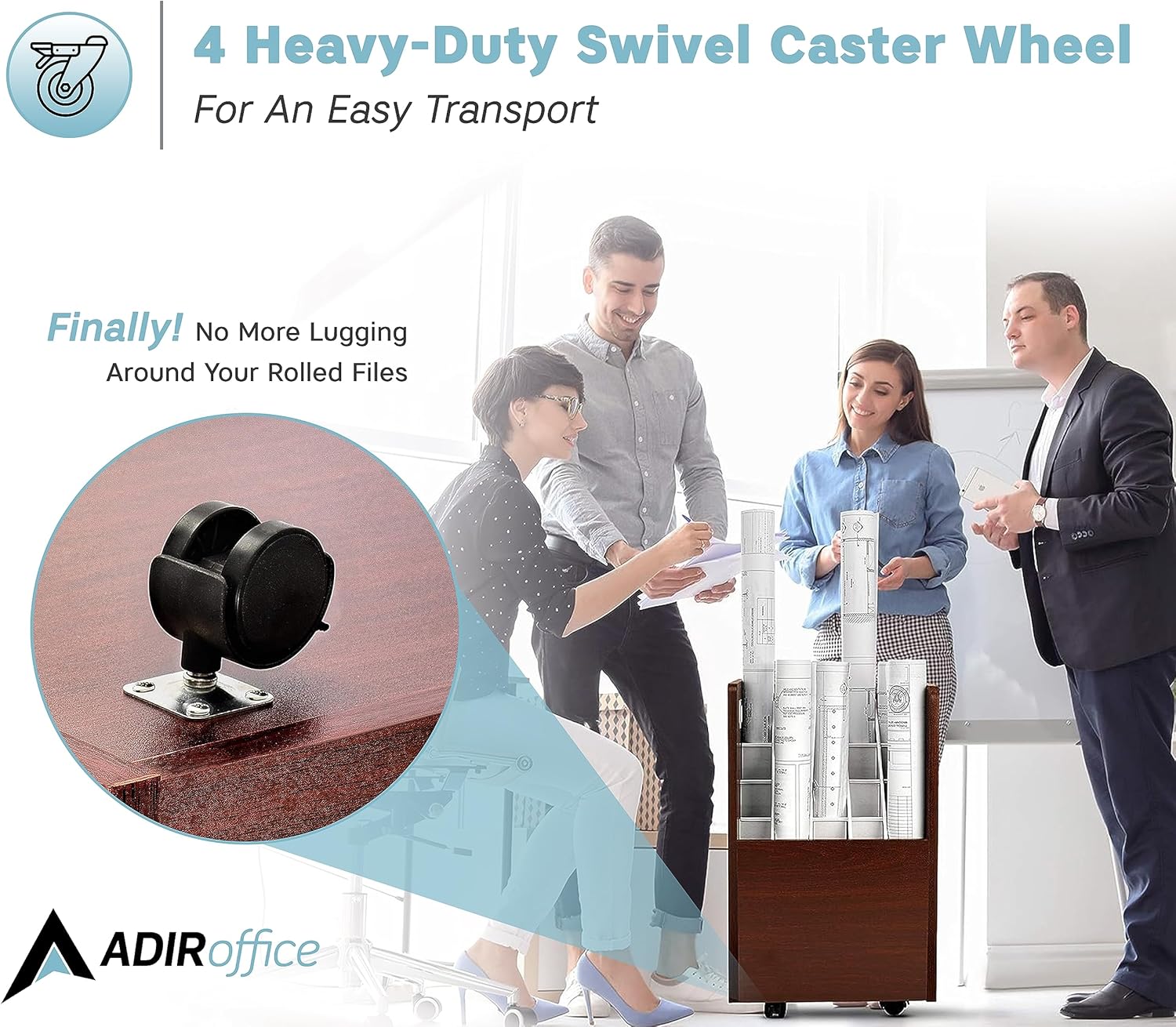 - Versatile use: Adir’s rolled files organizer serves multiple purposes. It can be used as a blueprint storage cabinet, rolled poster storage, vinyl roll holder, map storage cart, architectural plan storage, and more.