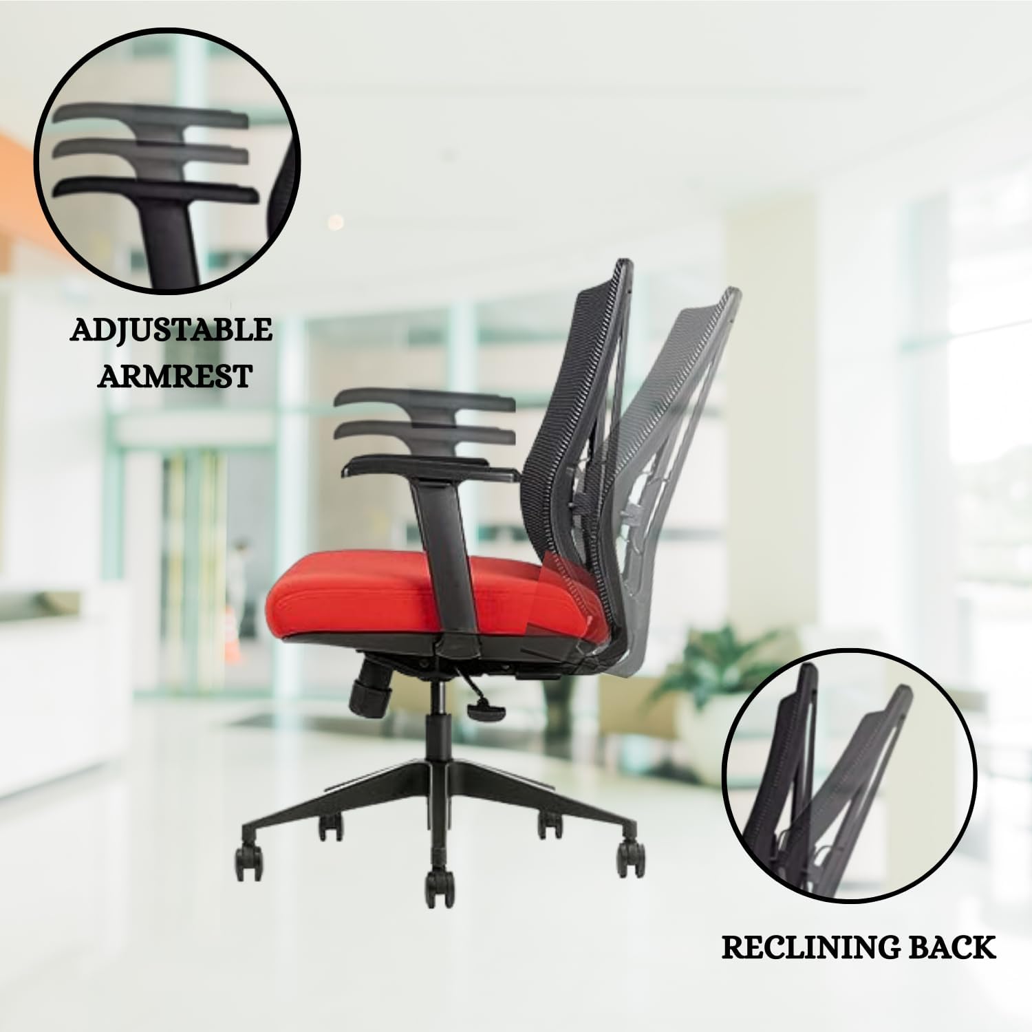 - Breathable Mesh: The mesh back on this office desk chair provides support while keeping your back cool and comfortable. Compared to conventional chairs, the mesh allows air to circulate, keeping your back sweat-free and allowing you to sit comfortably for longer periods of time.