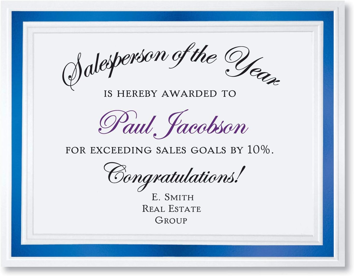 - Sophisticated Design: Each box includes 50 embossed 8½" x 11" certificates crafted from 38lb white paper, featuring a striking bold blue foil inner border that adds an elegant touch to every award