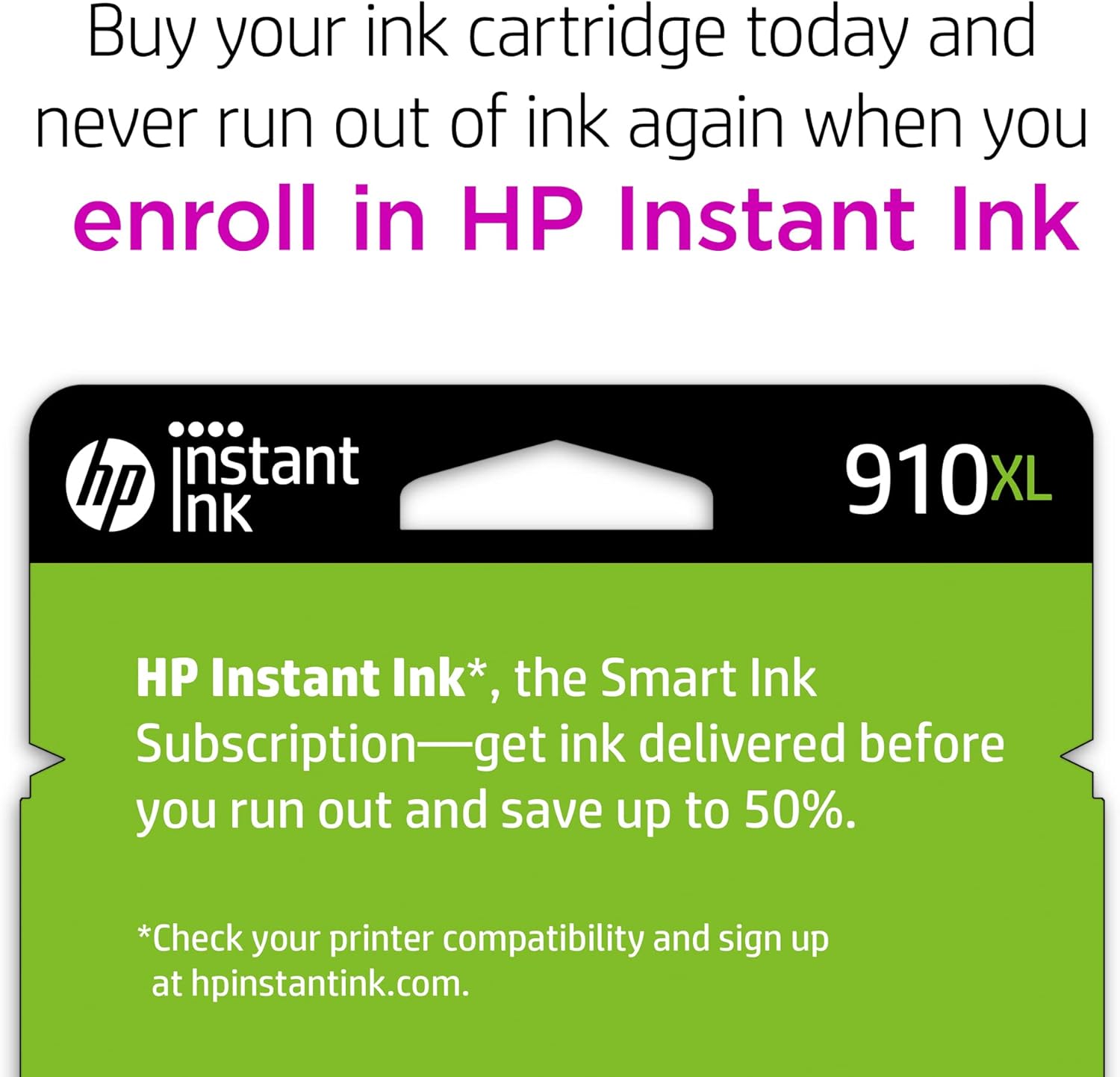 - Get ink your way: buy HP Ink Cartridges or save up to 50% and never run out with HP Instant Ink, the Smart Ink Subscription.