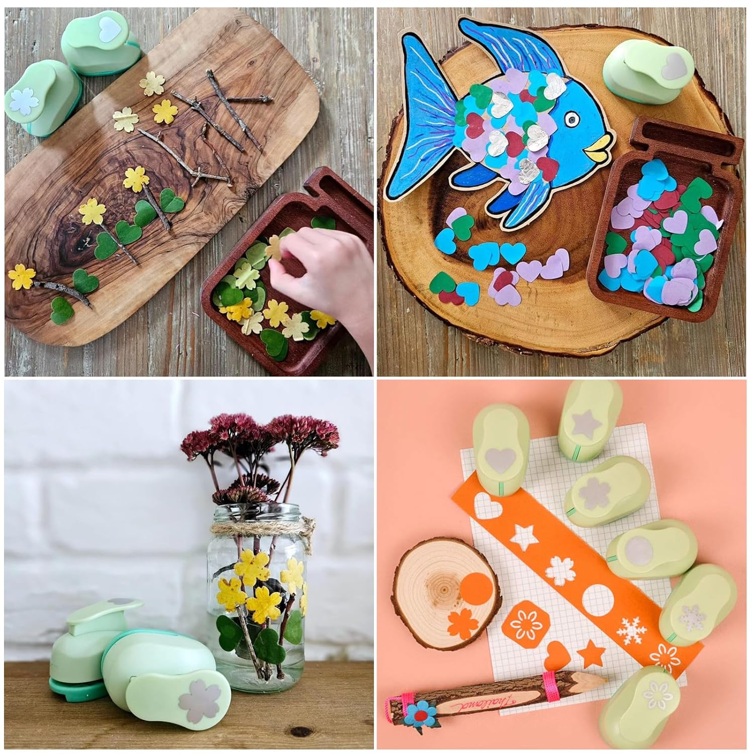 UCEC Paper Punches for Crafting, Hole Punch for Kids, 1 Inch Craft Hole Punch Shapes, 6PCS Star Heart Flower Punch Kids Hole Puncher Shape Cutters for Crafts for School Crafting & DIY Projects