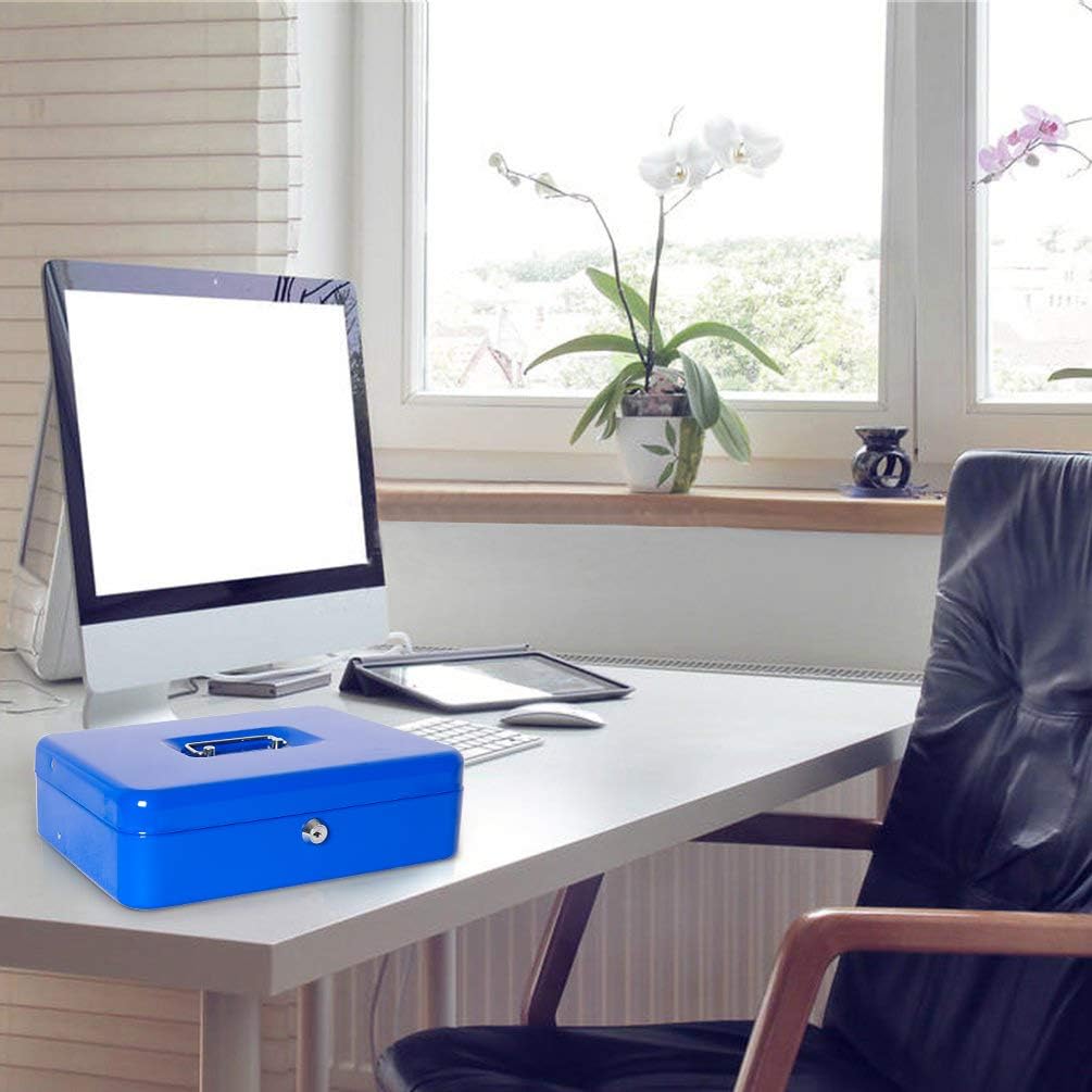 Jssmst Locking Large Metal Cash Box with Money Tray, Lock Money Box with Key, Blue, CB00513XL