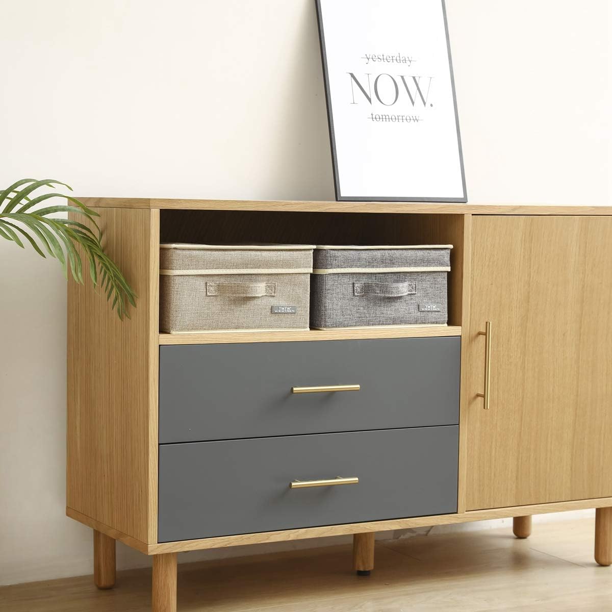 YueYue 4 Pack Small Fabric Storage Box with Lids, Foldable Linen Storage Box with Lids 4 Pieces Gray&Linen Set 12.4in/12in/6.7in