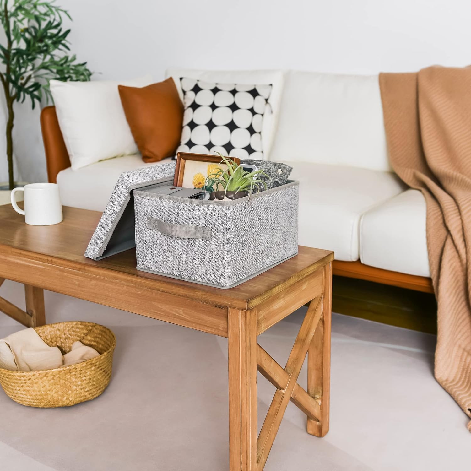 - Stackable and Foldable: The covered storage box is made of heavy-duty thick cardboard around the edges, with a thick base and lid, allowing you to maximize your storage space when stacked. When not in use, these storage boxes easily fold flat to save space.
