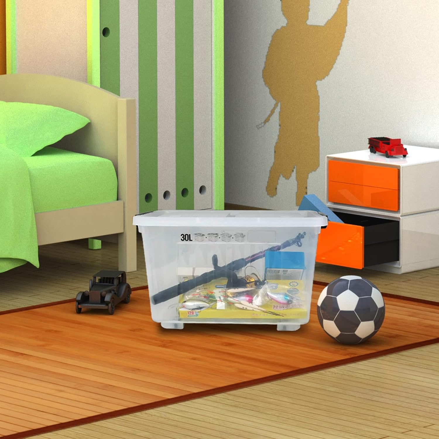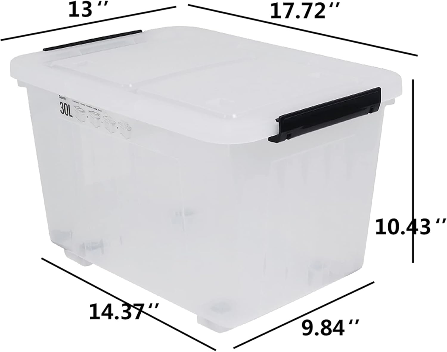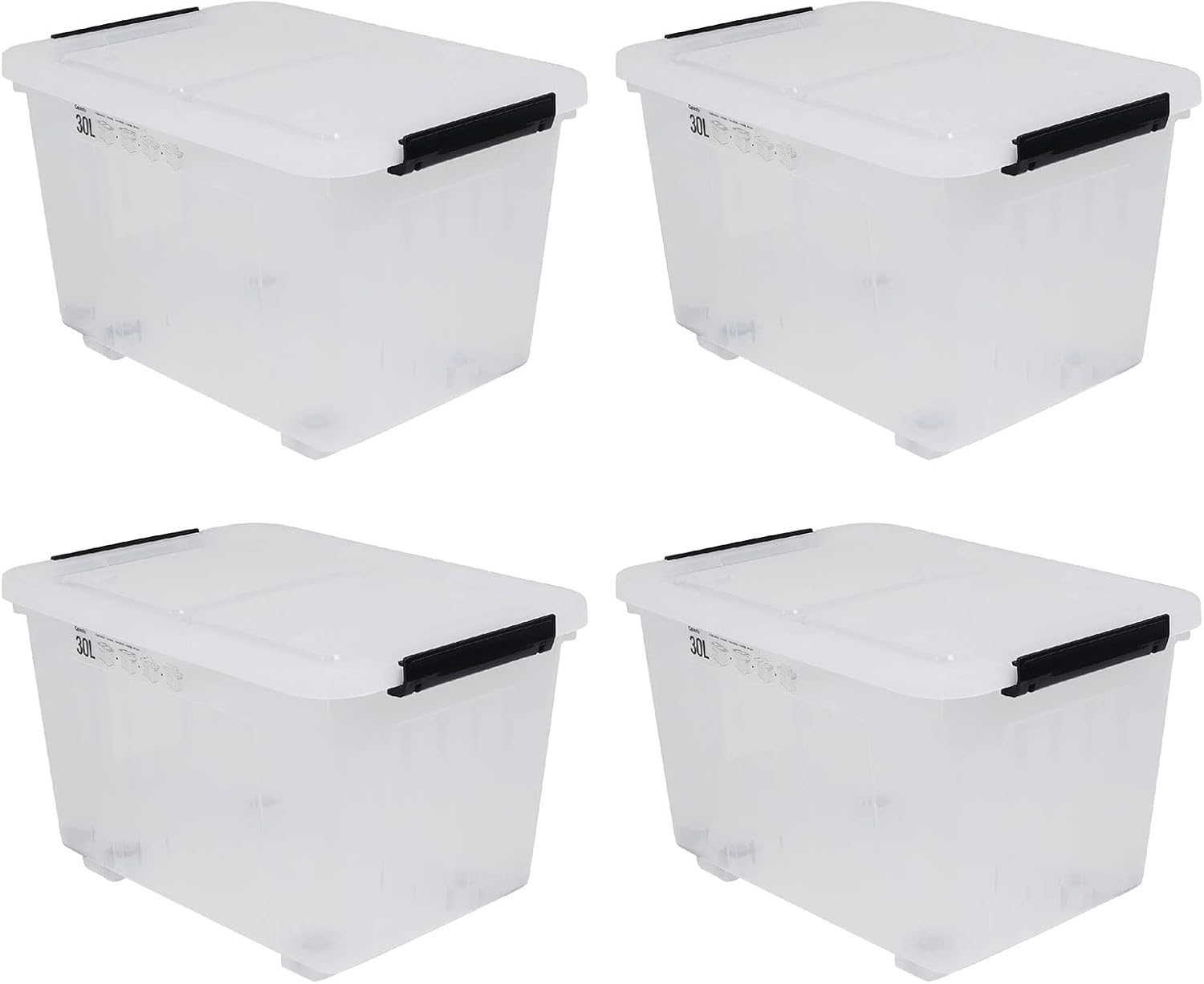 4 Packs 30 Liter Clear Large Storage Boxes Container with Lids and Wheels