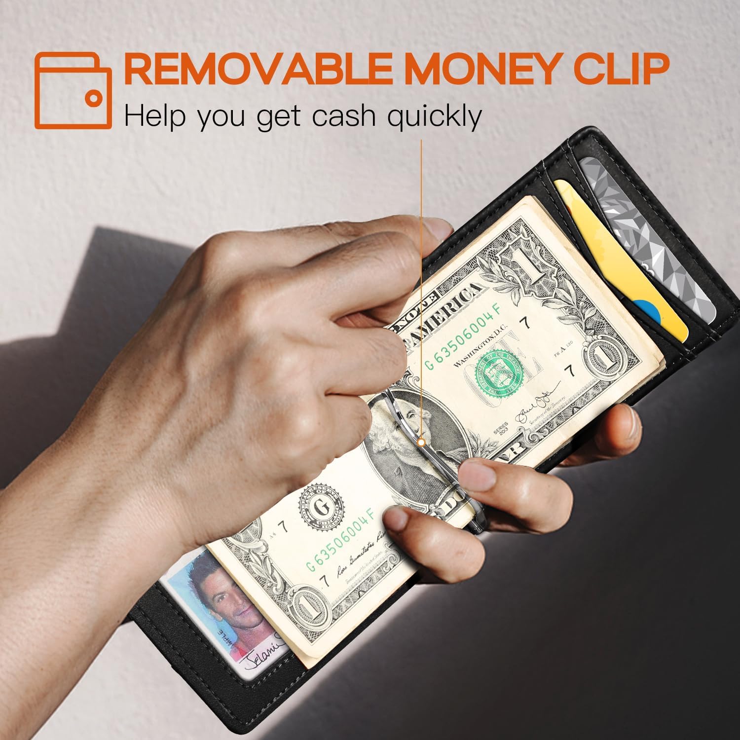 - SLIM and THIN - Measures only 4" x 3" with 6 card slots and 1 ID window. RUNBOX slim wallets are made with the Full Grain leather, Top Grain Leather and Vegan Leather. Designed Quick Access ID Windows, Best Fits 6-8 cards plus US bills with no bulk.