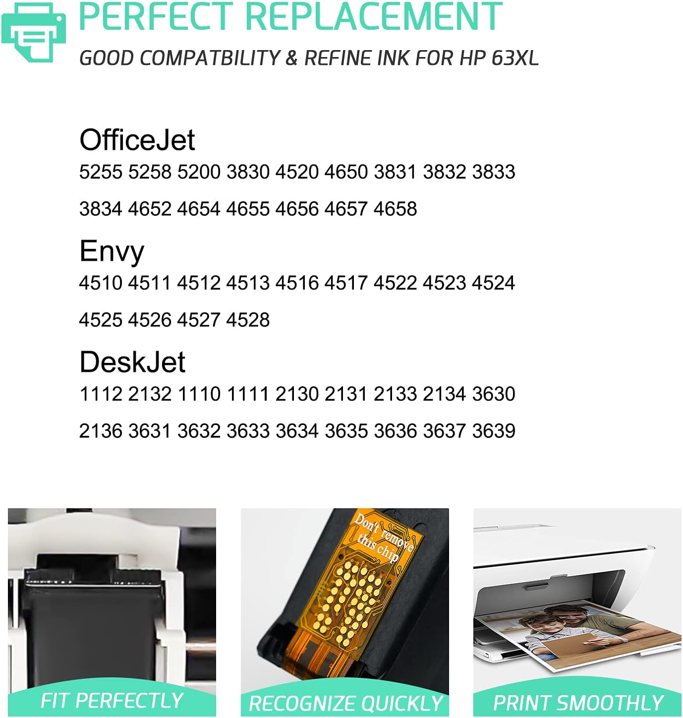 RETCH Remanufactured Ink Cartridges Replacement for HP 63XL F6U63AN for Envy 4520 4516 Officejet 5255 5258 5220 3830 4650 3831 3833 4655 DeskJet 1112 3630 3632 3633 3634 2130 2132 Inkjet Printer Tray