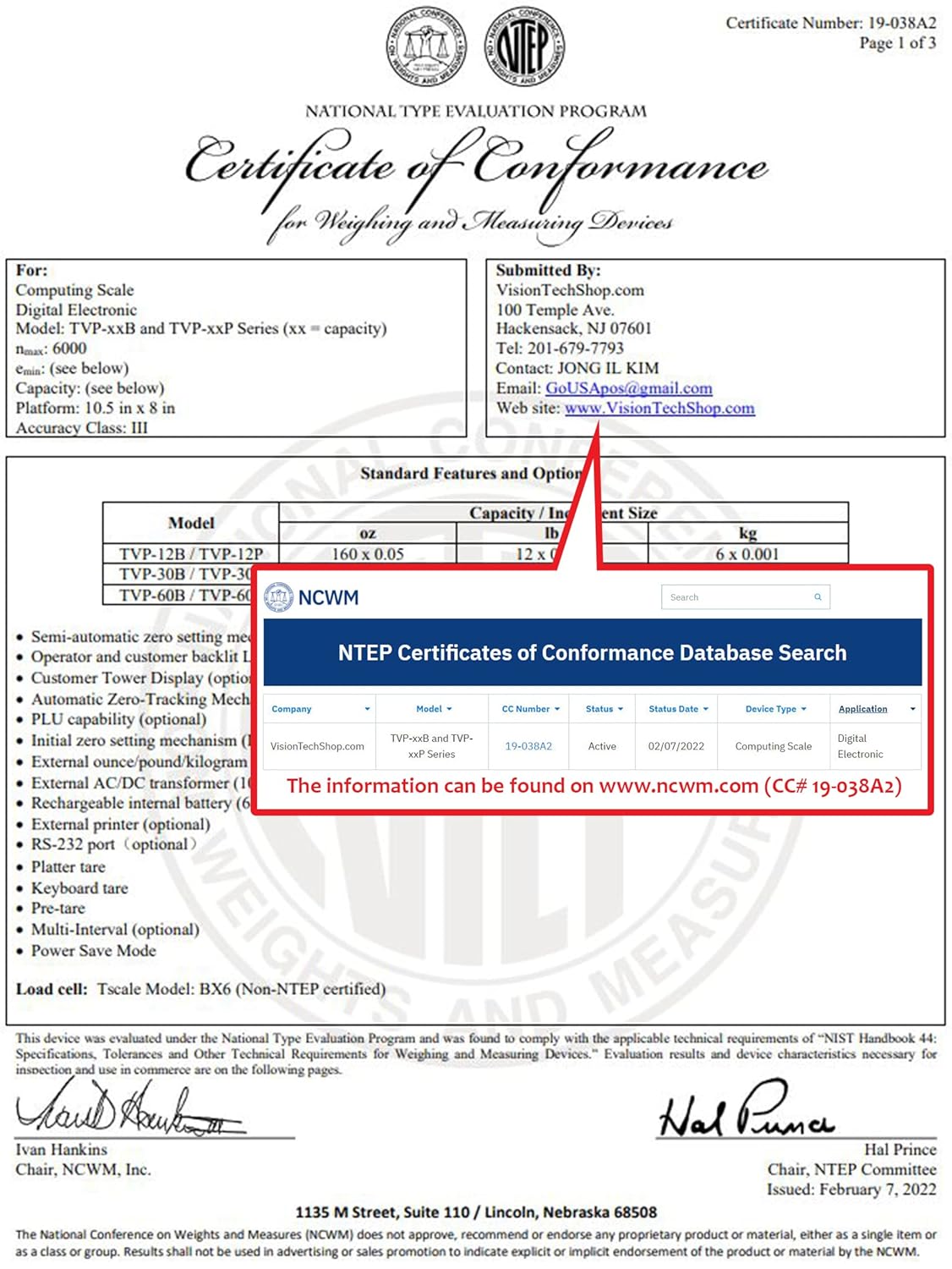 - Lb/Oz/Kg switchable, Easy Operating, NTEP Approved Legal for Trade, Coc #19-038, NSF Certified
