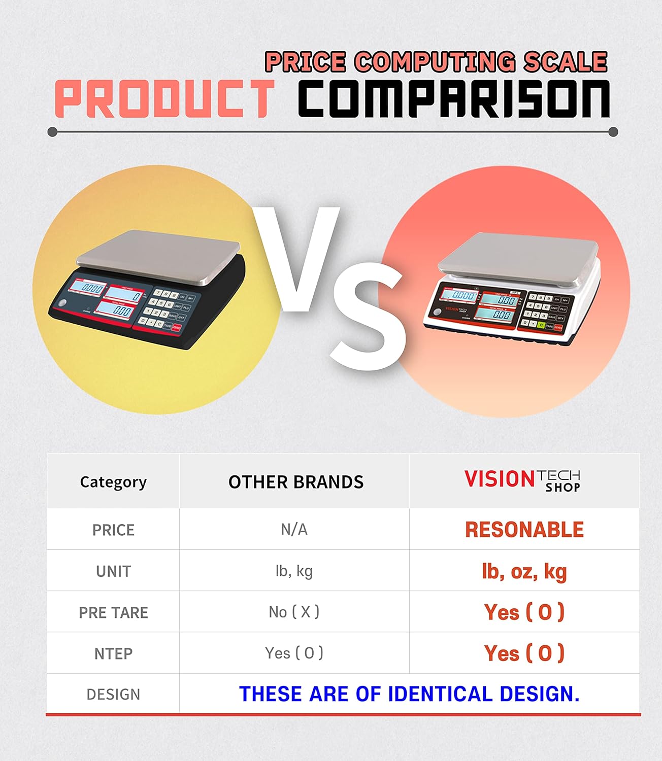 VisionTechShop TVP-60B Price Computing Scale, Lb/Oz/Kg Switchable, 60lb Capacity, 0.01lb Readability, NTEP Legal for Trade COC #19-038, NSF Certified