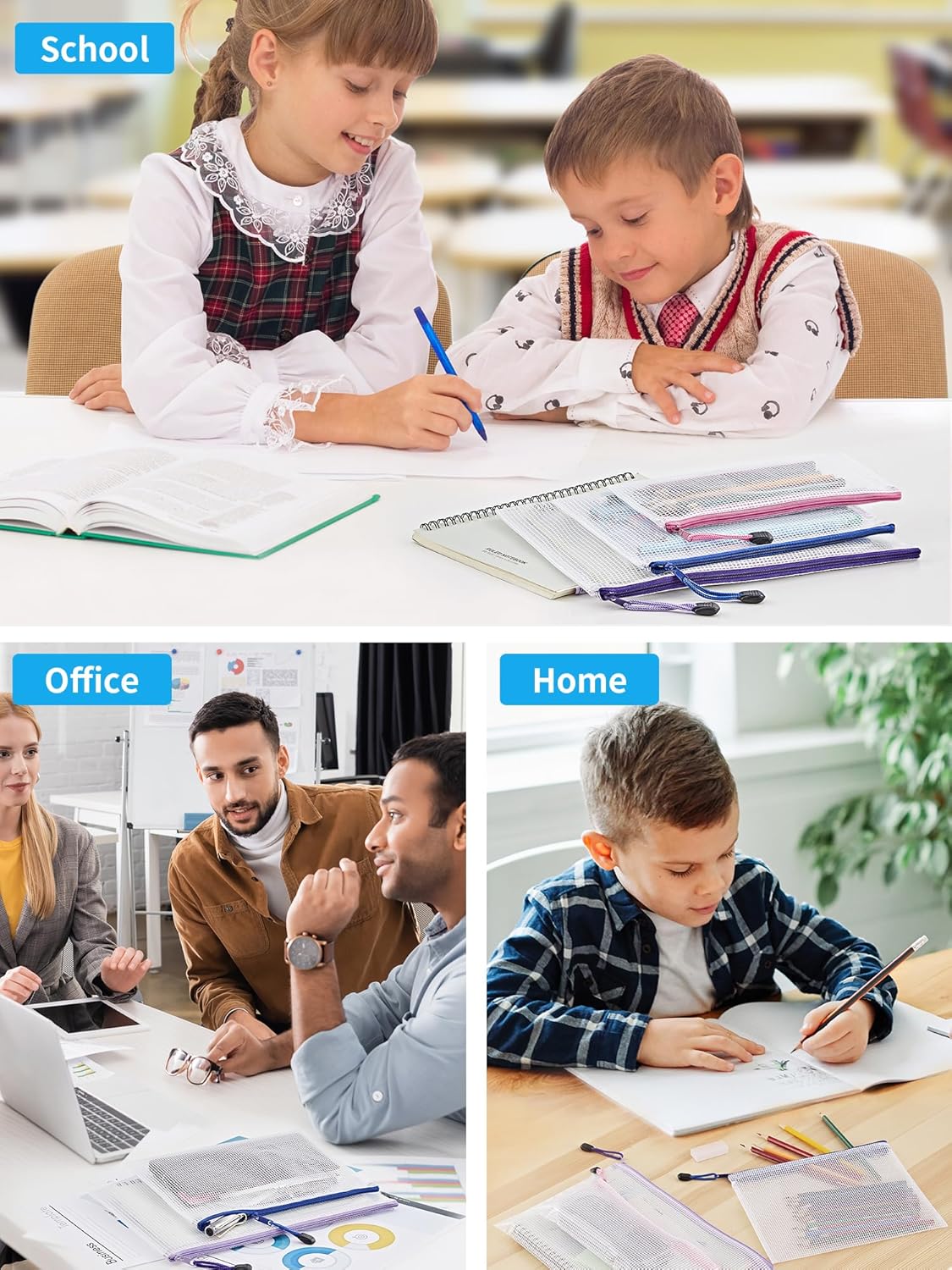 - Advantages: The translucent design and colorful zipper allow identifying items. Suitable for use in homes, schools, colleges, offices, and travel, can be used to organize books, paper, bills, photos, cosmetics, toys, etc.