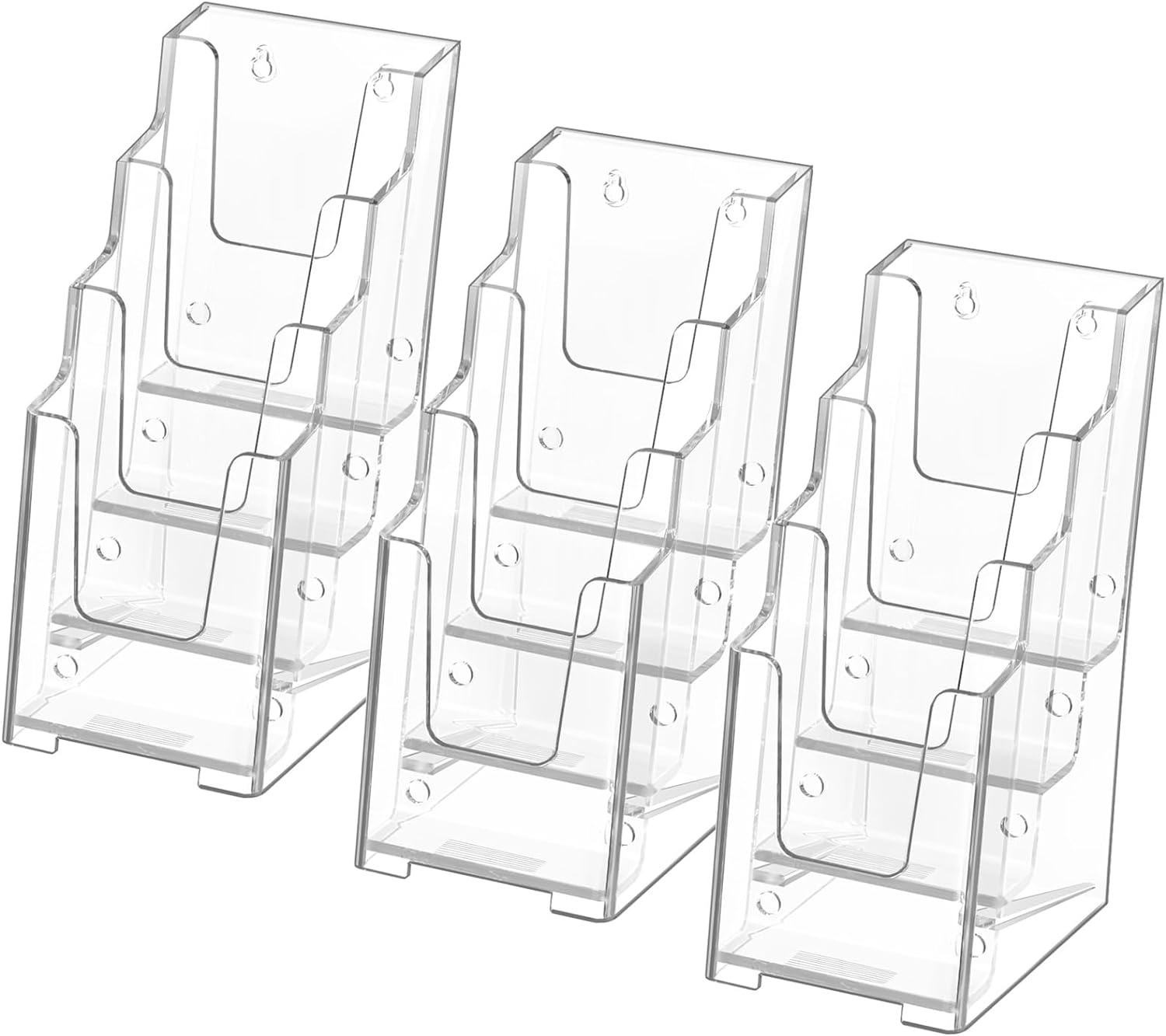 MaxGear Acrylic Brochure Holder, 4 Inch Wide 4 Tier Clear Literature Display Stand Premium Plastic Pamphlet Holder, Multi Pocket Wall Mount or Countertop Organizer for Office or Home, 3 Pack