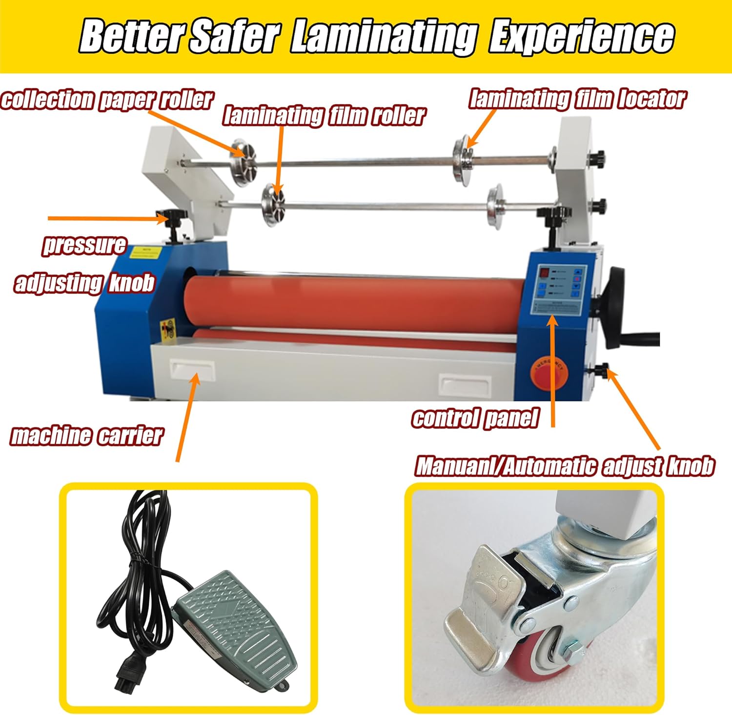 - 【Adjustable Speed】-Buttons on the operate faceplate are all light contact buttons. The lamination speed can be adjusted according to your needs. Adjustable roller position suitable for various material thickness. Maximum Laminating Thickness: 1"(25mm).