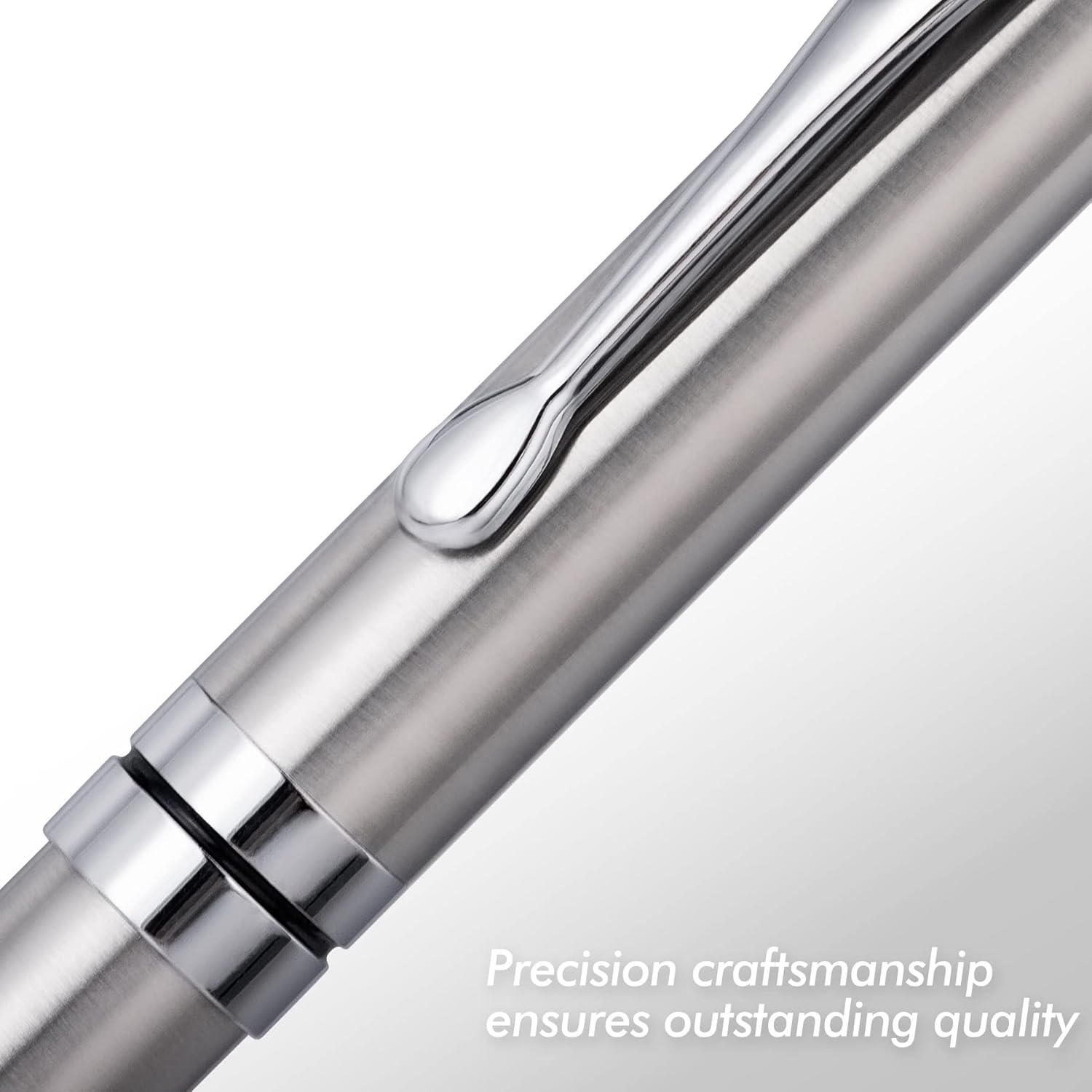 - Stainless Steel Body- Attractive business style stainless steel metal ballpoint pen, suitable weight can be comfortably held in the hand for writing. The pen is solid and more durable with a long life span. Although simple and minimalist, the matte silver exterior of each pen looks classy and sophisticated. Meets all your needs for signing checks, taking notes, filling out forms, etc. Best pen for use in a professional, office, or business setting.