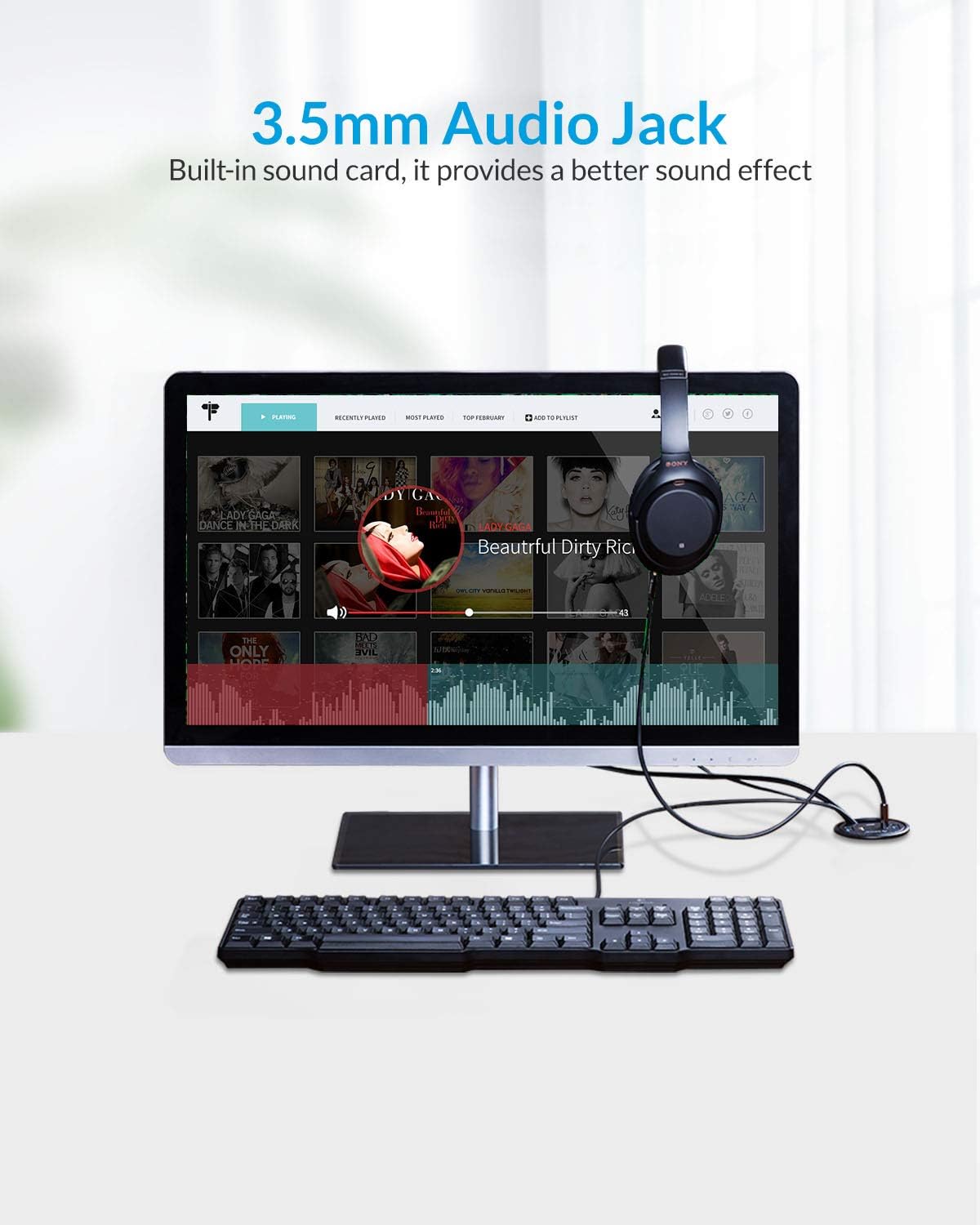 - 3.5mm Audio Jack: Support speakers and headsets making music listening, gaming, and business conference call more convenient. The cable is 59-inch long to reach the PC underneath your table.