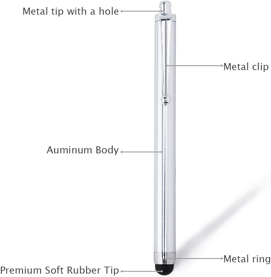 - EASY TO CARRY--The stylus is with clip and the length is perfect to fit in a pocket, diary. Made by lightweight aluminum so can keep one handy no matter where you are.