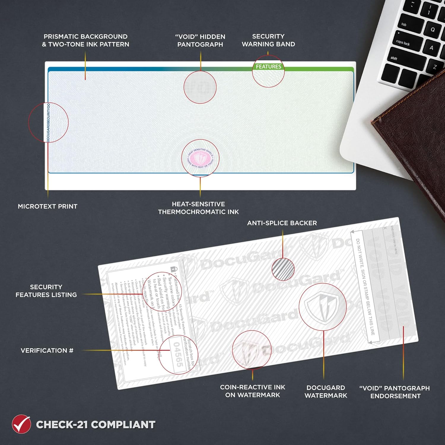 DocuGard Blue/Green Sunburst Premier Prismatic Top High Security Check Paper - QuickBooks & Laser/Inkjet Printer Compatible - 13 Security Features - 500 Blank Business Checks (04565)